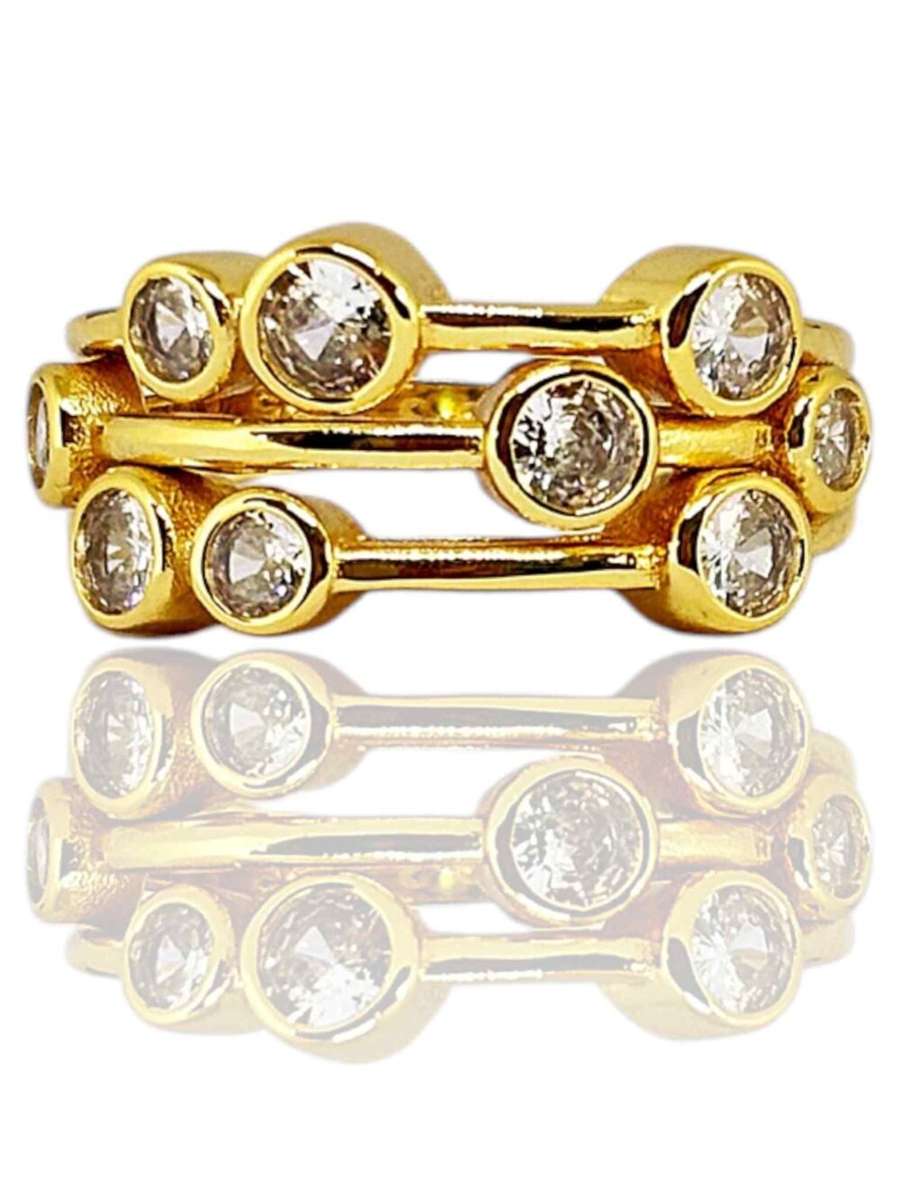 Δαχτυλίδι απο ασήμι 925* , επιχρυσωμένο. Τρεις σειρές ενωμένες με στρογγυλά ζιργκόν.