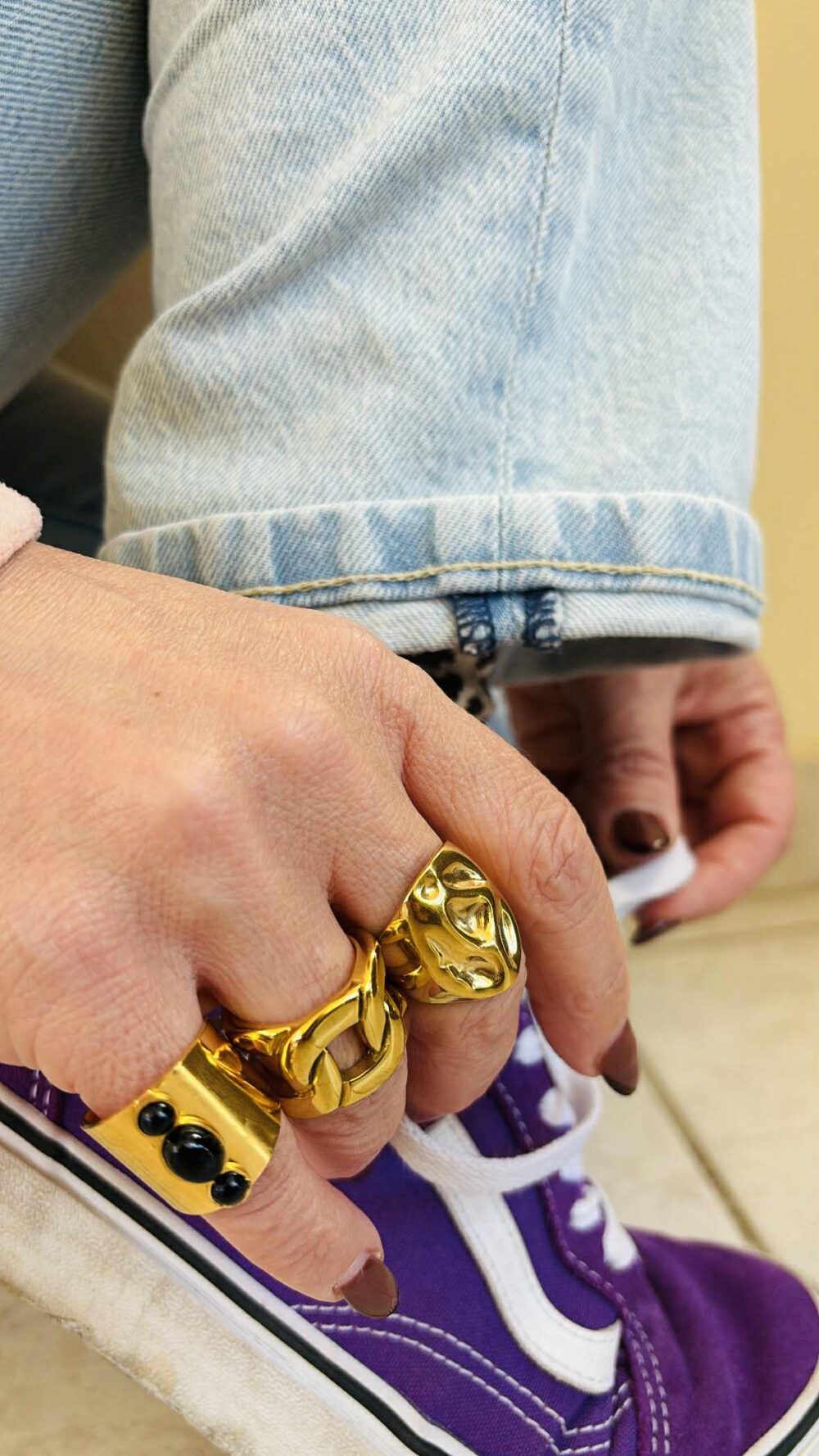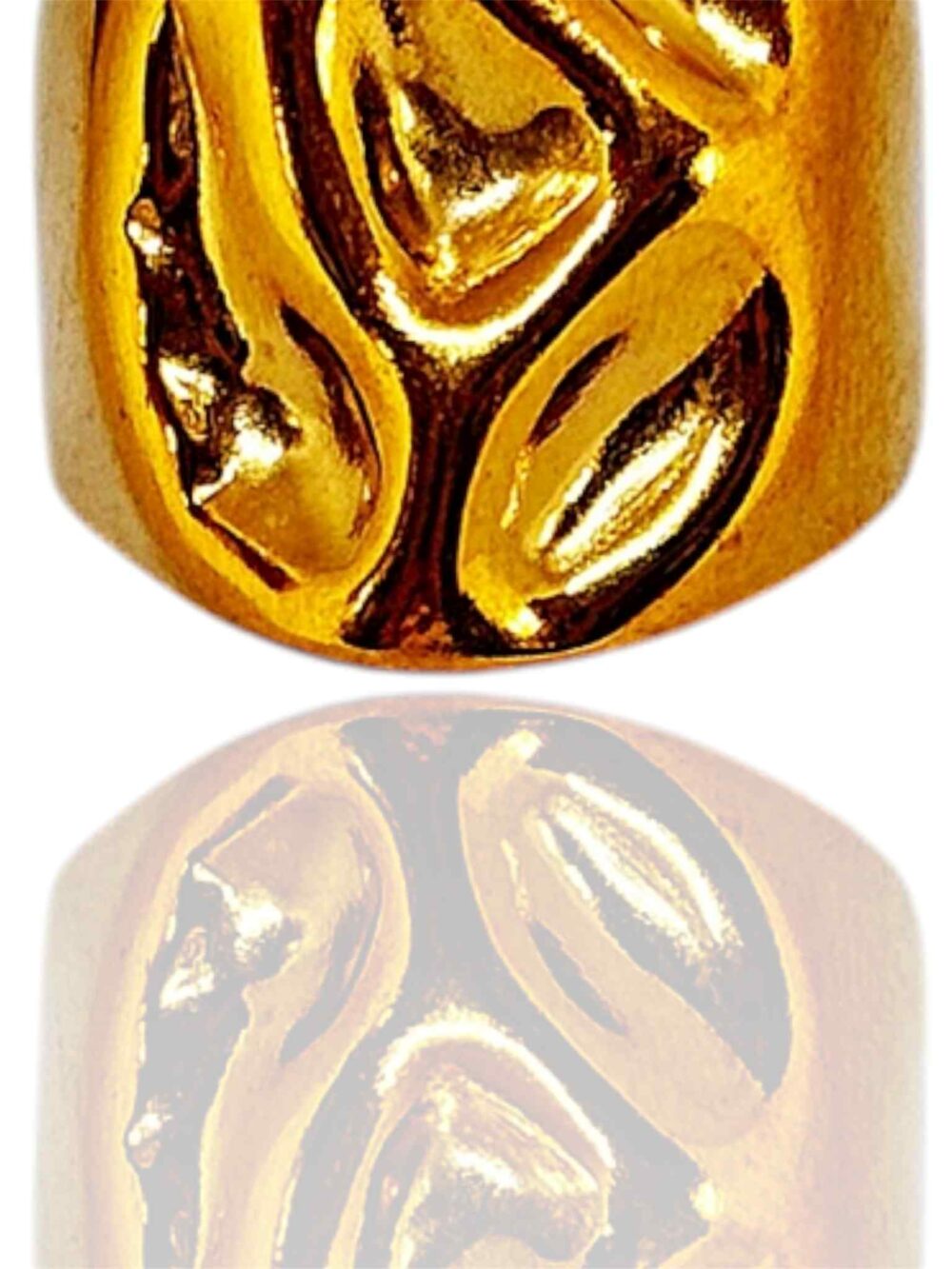 Δαχτυλίδι απο ανοξείδωτο ατσάλι , επιχρυσωμένο. Σχέδιο σαν τσαλακωμένο χαρτί . Με ανοιχτή γάμπα , αυξομειώνεται.