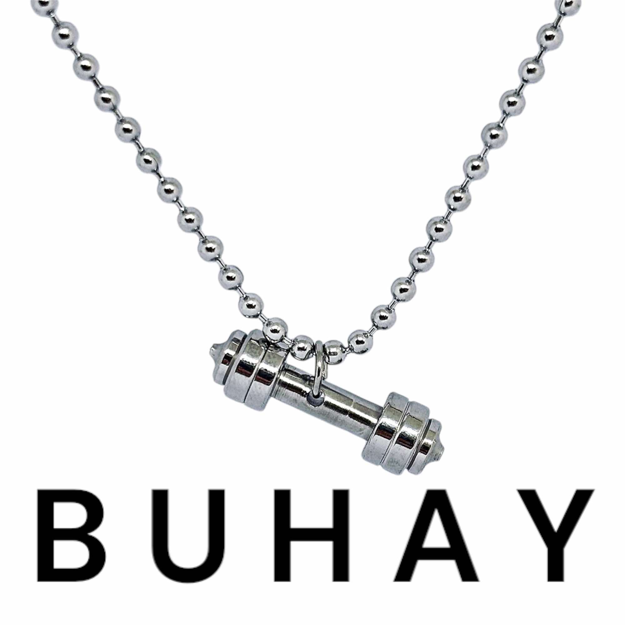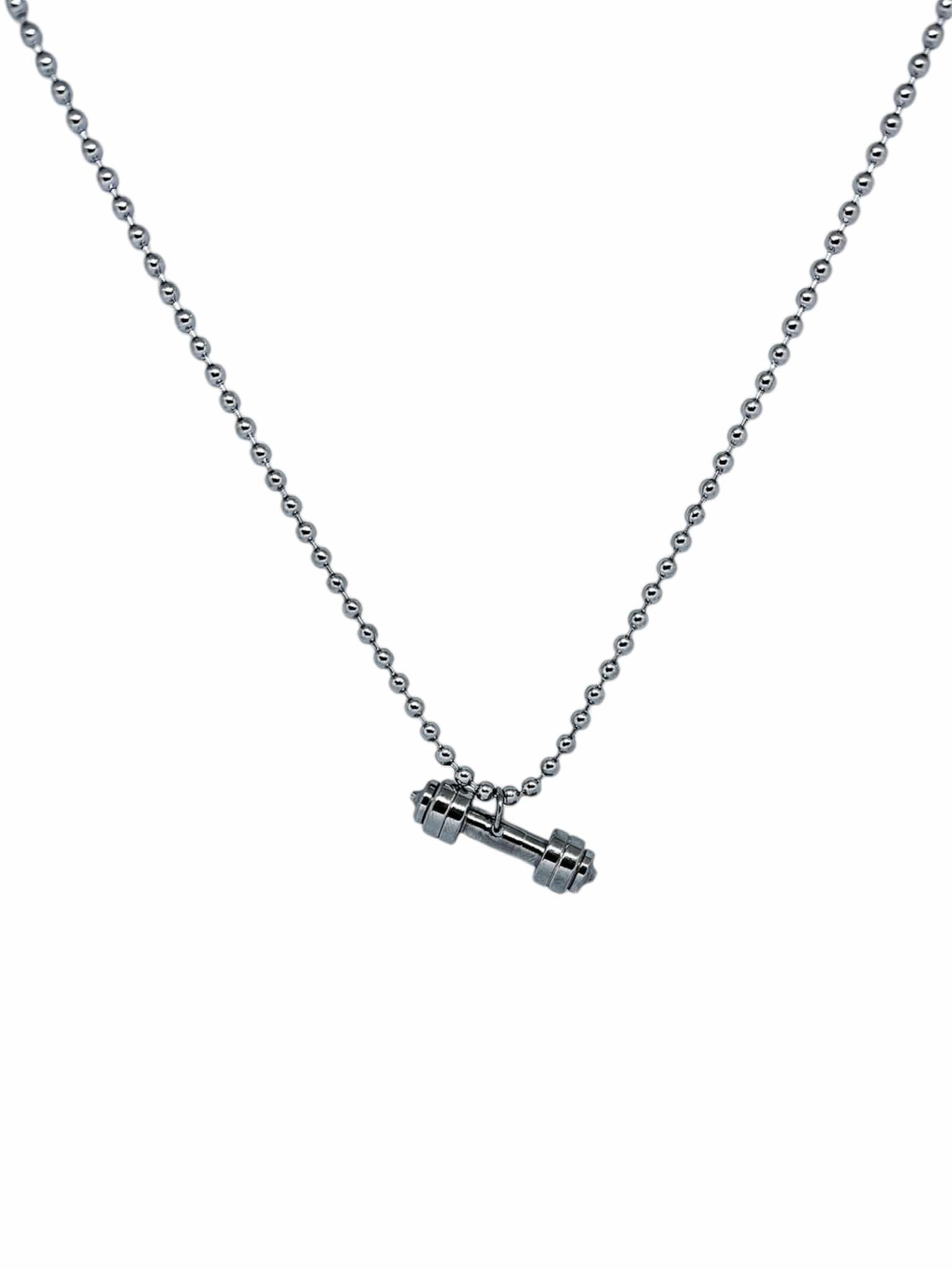 Ανδρικό κολιέ απο ανοξείδωτο ατσάλι. Αλυσίδα τύπου καζανάκι , κρέμεται ένα βαράκι γυμναστηριού.