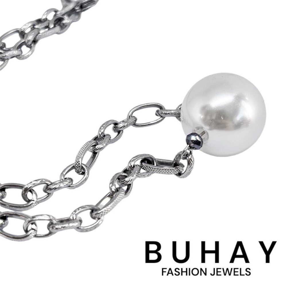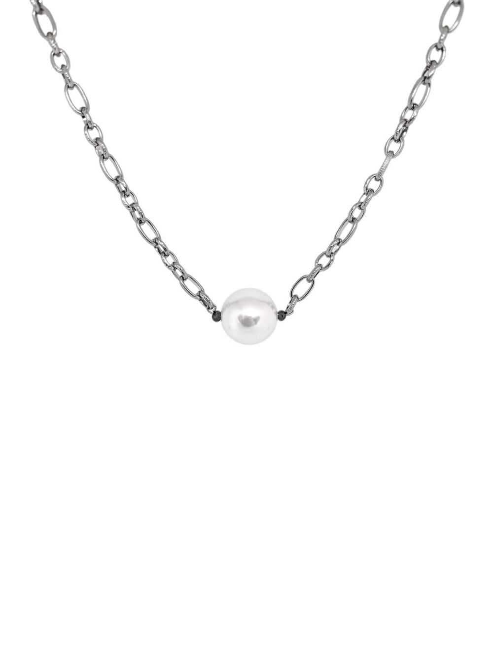 Χειροποιήτο κολιέ απο οικολογικό ορύχαλκο . Καδένα με οβάλ κρίκους χαραγμένους , εχει στο κέντρο μια πέρλα.