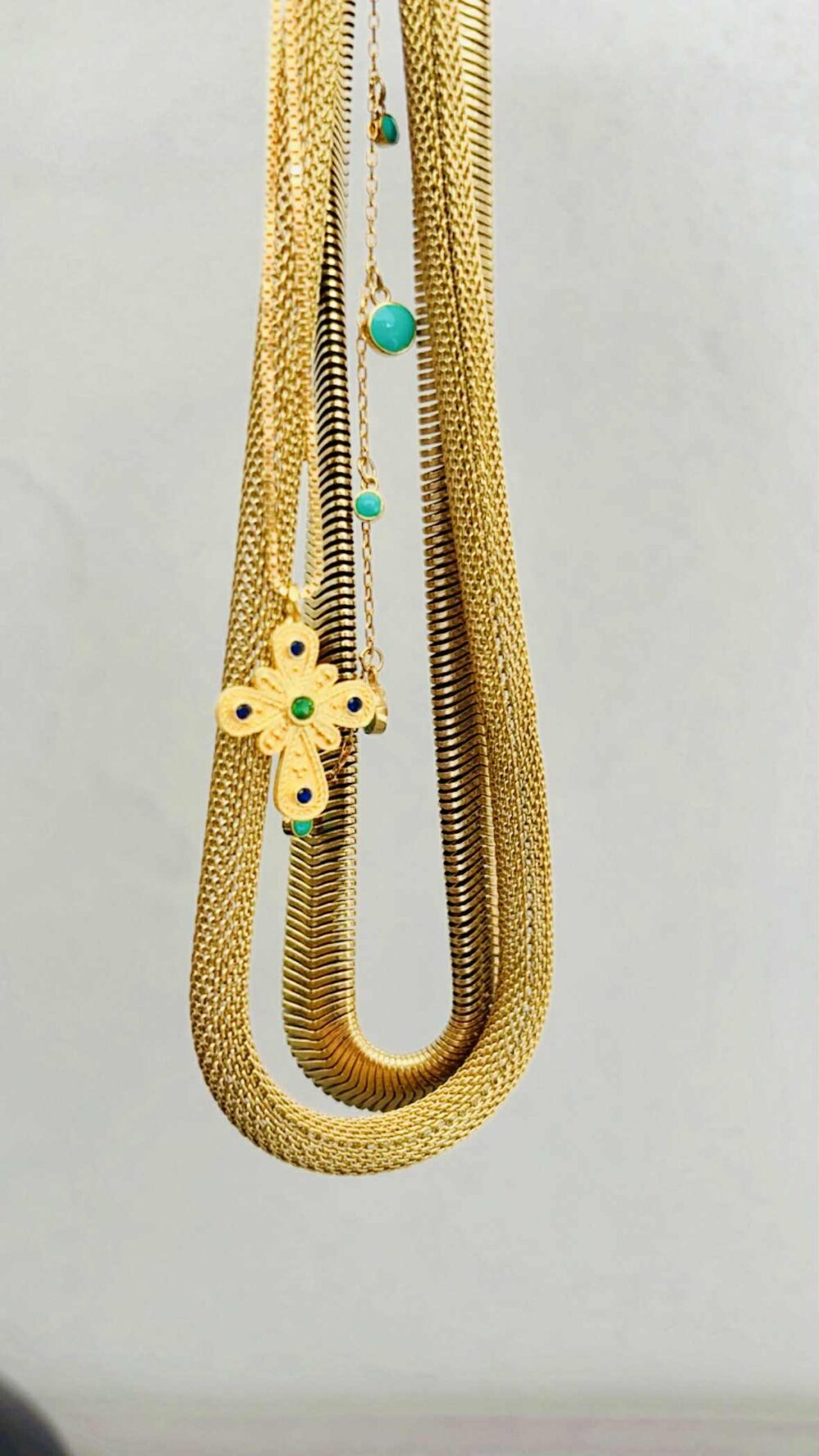 Κολιέ απο ανοξείδωτο ατσάλι , επιχρυσωμένο. Πλακέ αλ.υσίδα τύπου φίδι.