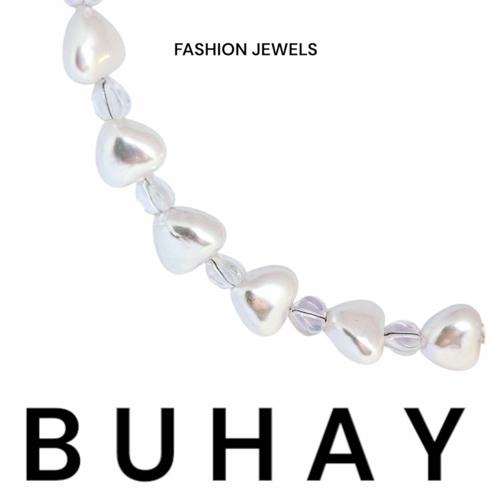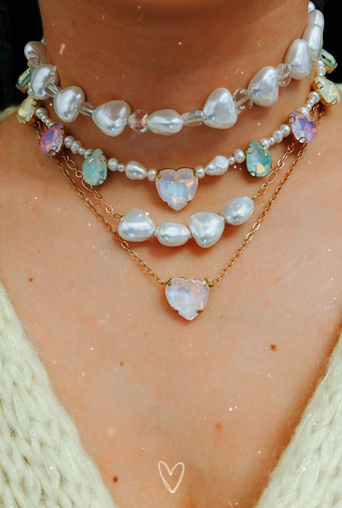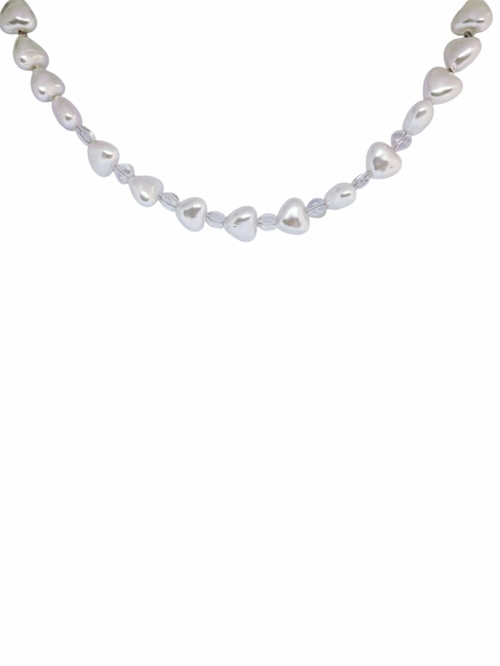 Χειροποιήτο κολιέ με πέρλες και κρυσταλλάκια σε σχήμα καρδιάς. Δεμένο σε ατσάλι.