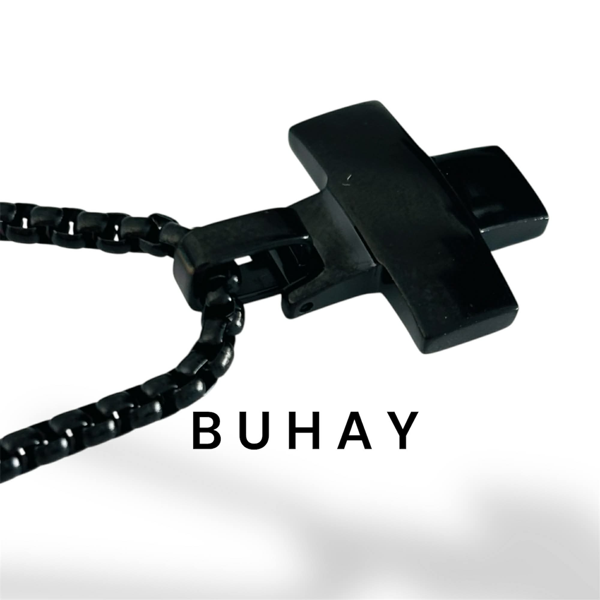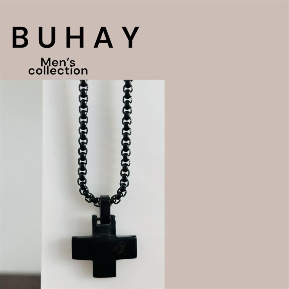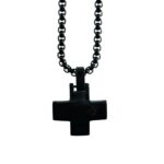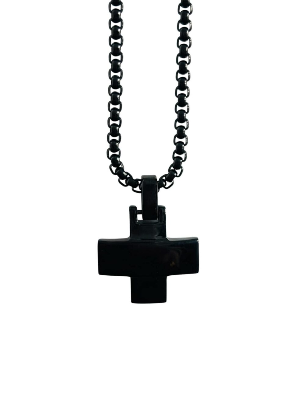Αντρικό κολιέ απο ανοξείδωτο ατσάλι , με μάυρη πατίνα. Αλυσίδα τύπου φίδι με μάυρο τετράγωνο σταυρό.