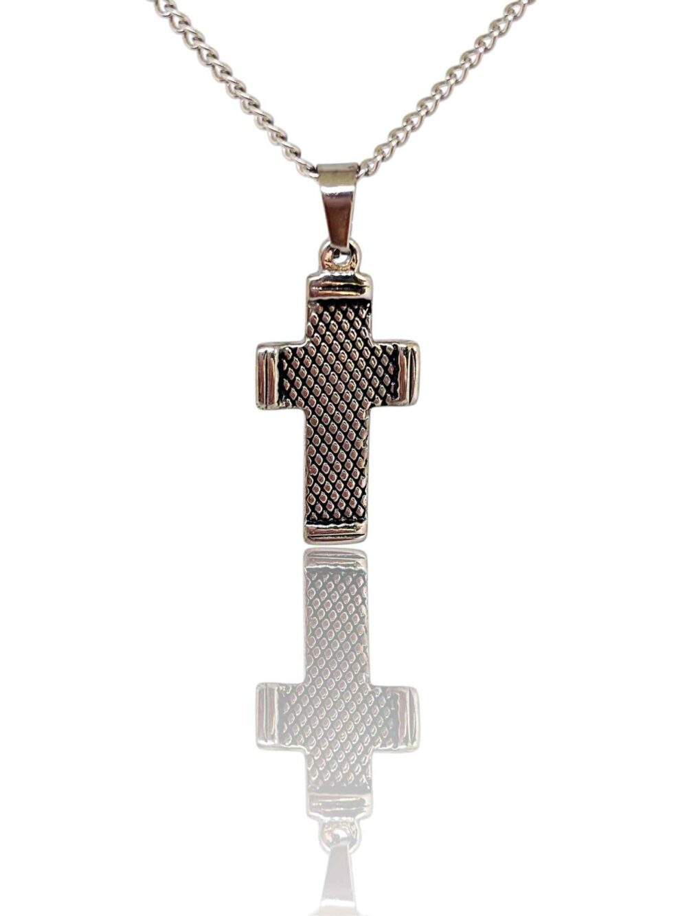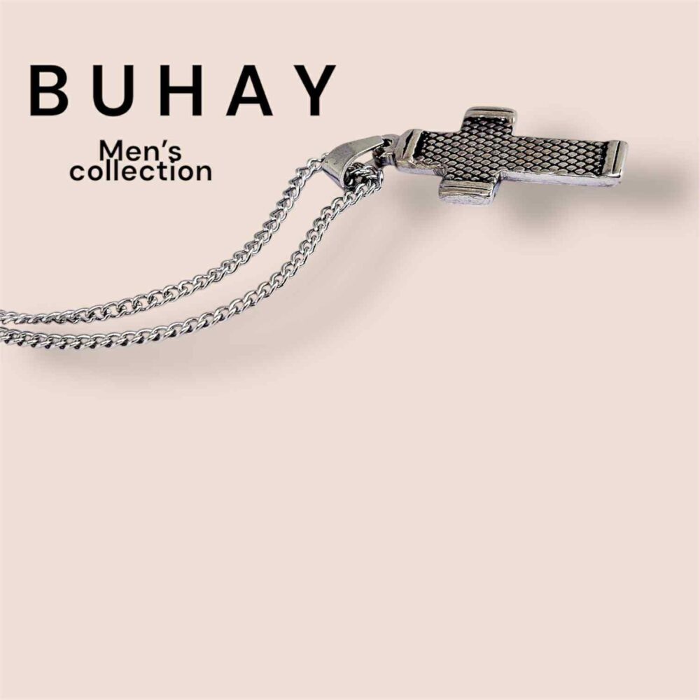 Αντρικό χειροποιήτο κολιέ , απο ανοξείδωτο ατσάλι. Με κλασική αλυσίδα και τετράγωνο σταυρό με λεπτομέρειες.