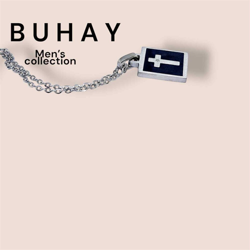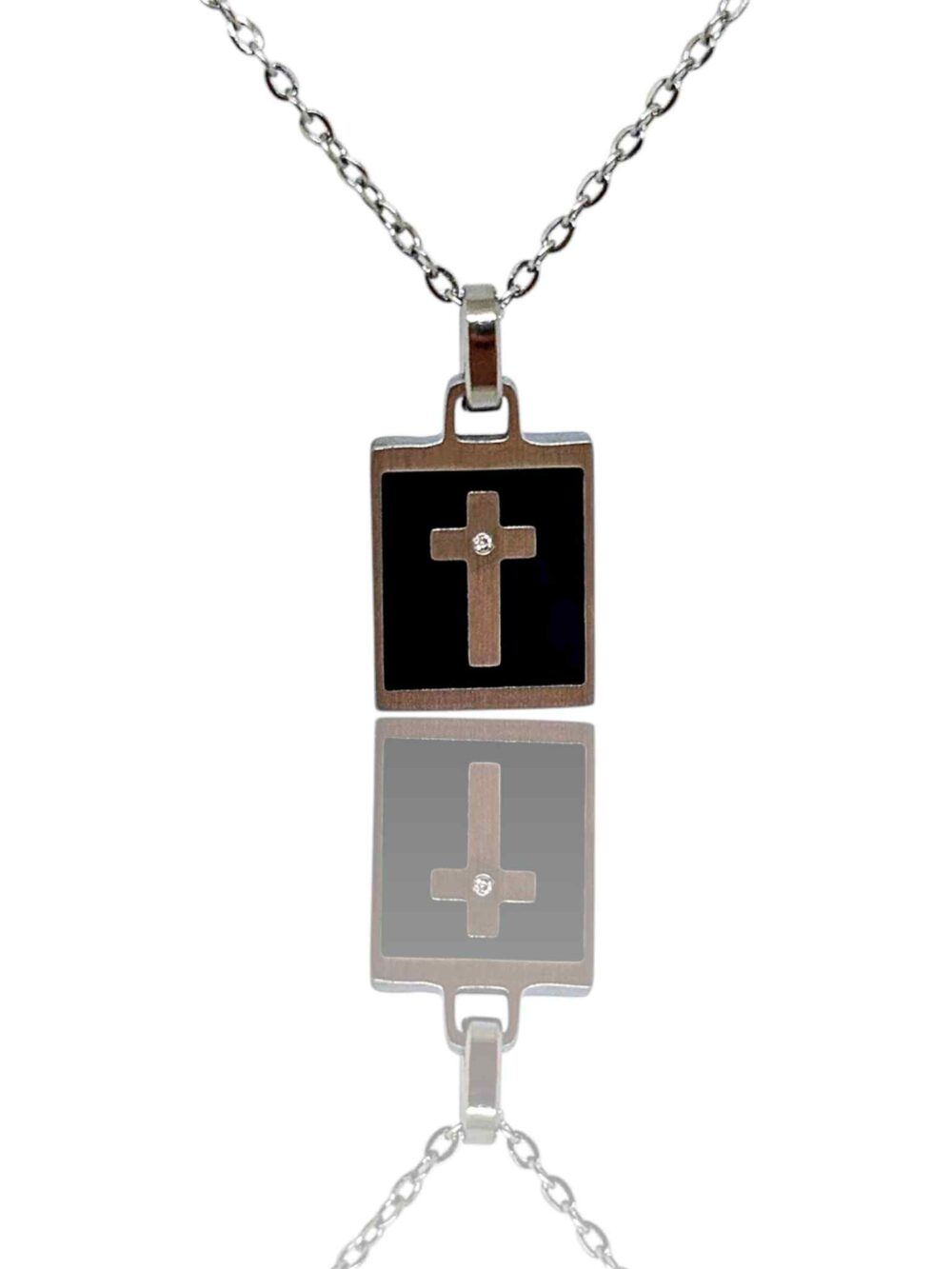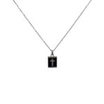 Αντρικό κολιέ , απο ανοξείδωτο ατσάλι. Κλασική αλυσίδα , κρέμεται μενταγιόν (2×1,5εκ.) με μάυρο όνυχα , που σχηματίζει σταυρό.
