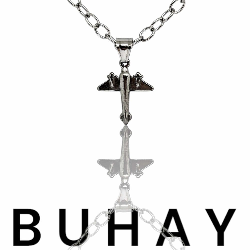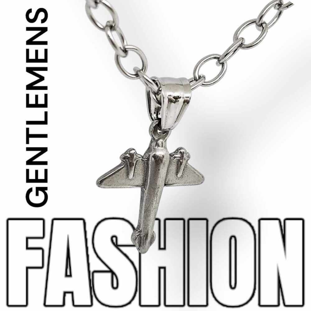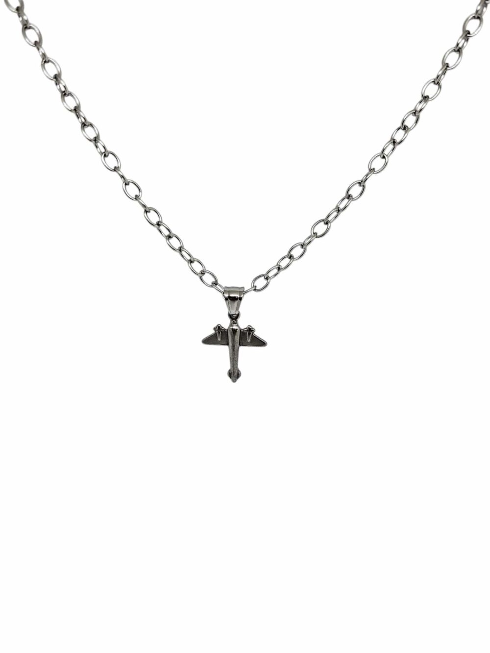 Ανδρικό κολιέ απο ανοξείδωτο ατσάλι. Αλυσίδα κρίκο-κρίκο με οβάλ κρίκους , κρέμεται ένα αεροπλάνο.