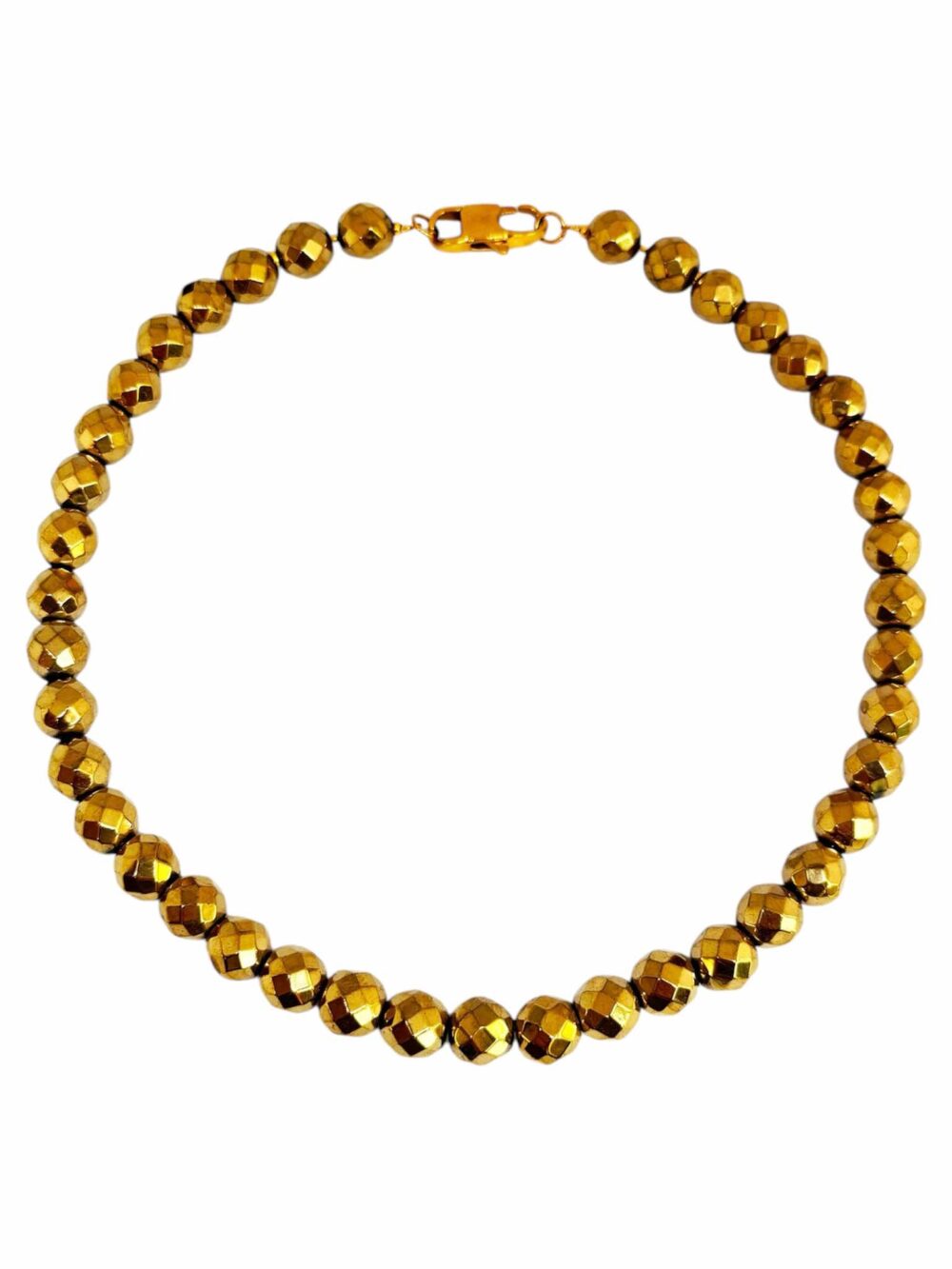 Χειροποιήτο κολιέ , με ορυκτό αιματίτη επίχρυσο ,διαμαντέ κοπή, περασμένο σε σύρμα απο ανοξείδωτο ατσάλι.
