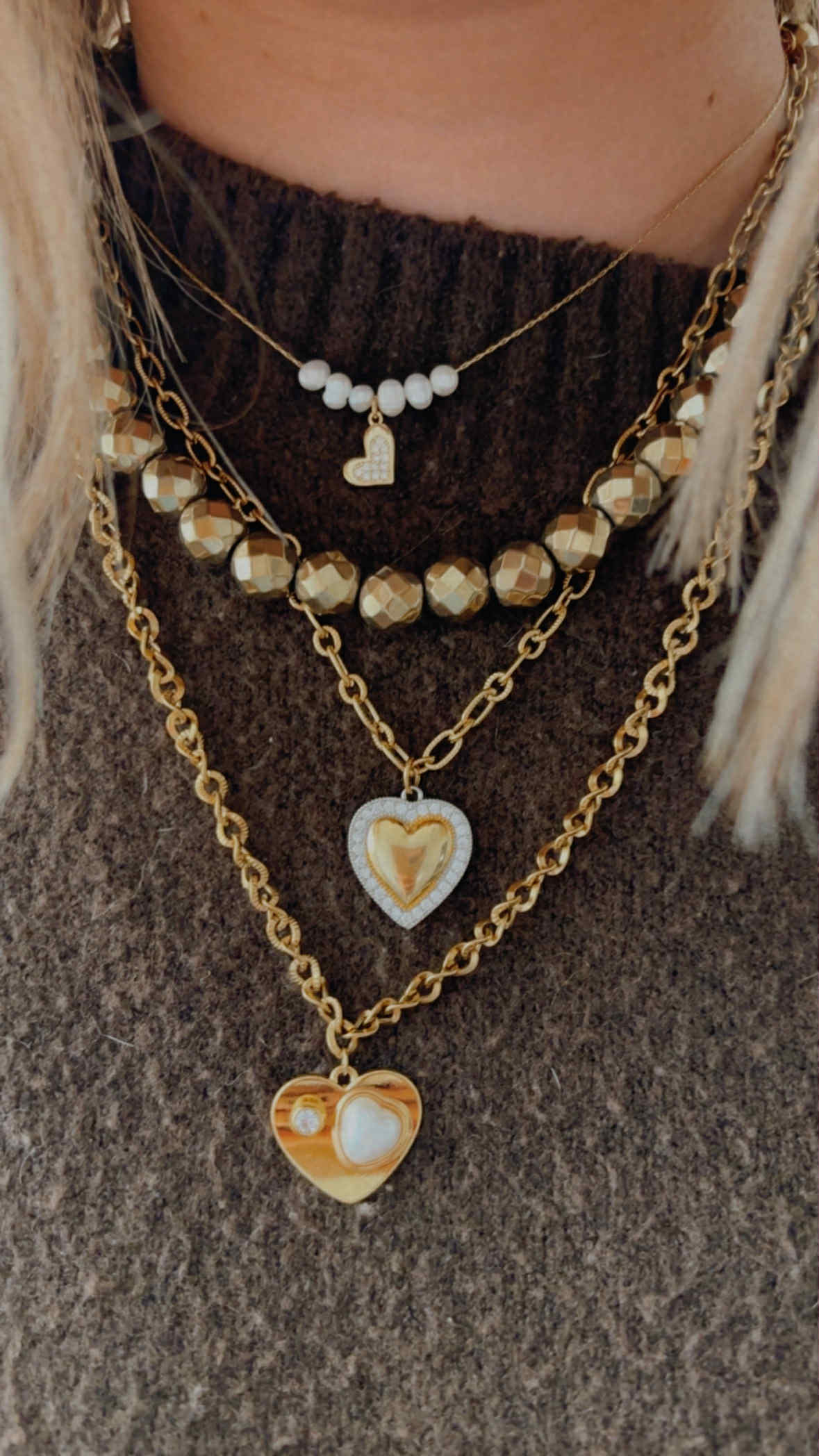 Χειροποιήτο κολιέ με αιματίτη χρυσό σε σχήμα καρδιάς και χρυσά κρυσταλλάκια. Δεμένο σε ατσάλι.
