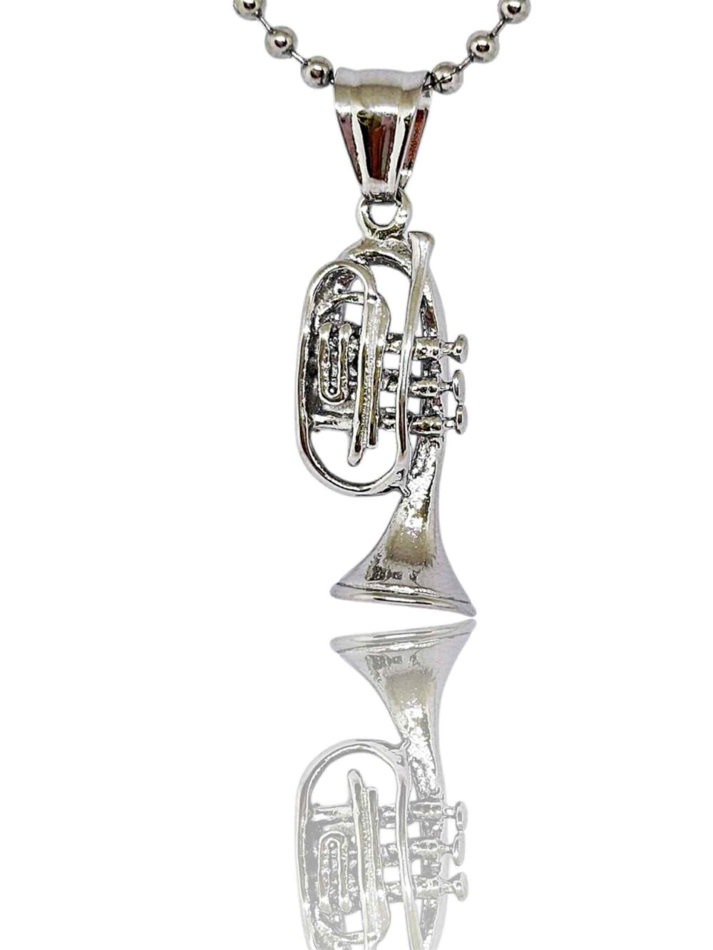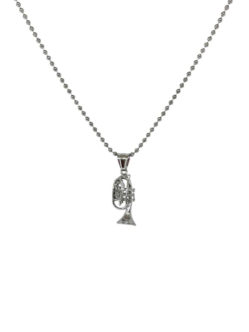 Αντρικό χειροποιήτο κολιέ , απο ανοξείδωτο ατσάλι. Με αλυσίδα τύπου καζανάκι και μενταγιόν τρομπέτα.