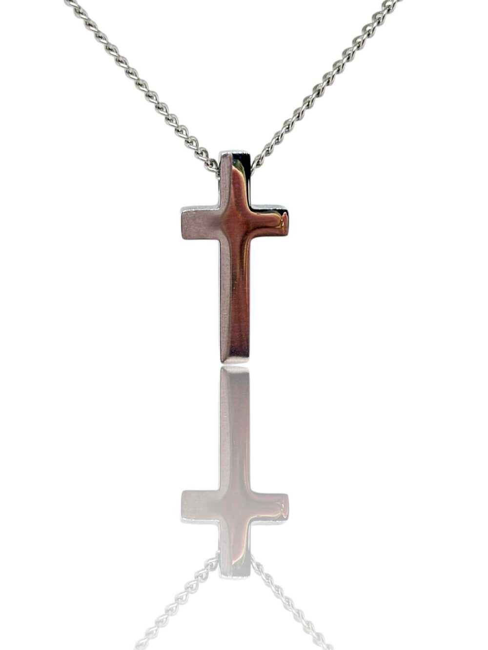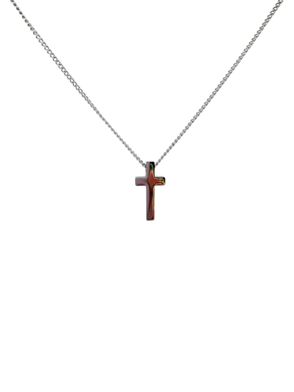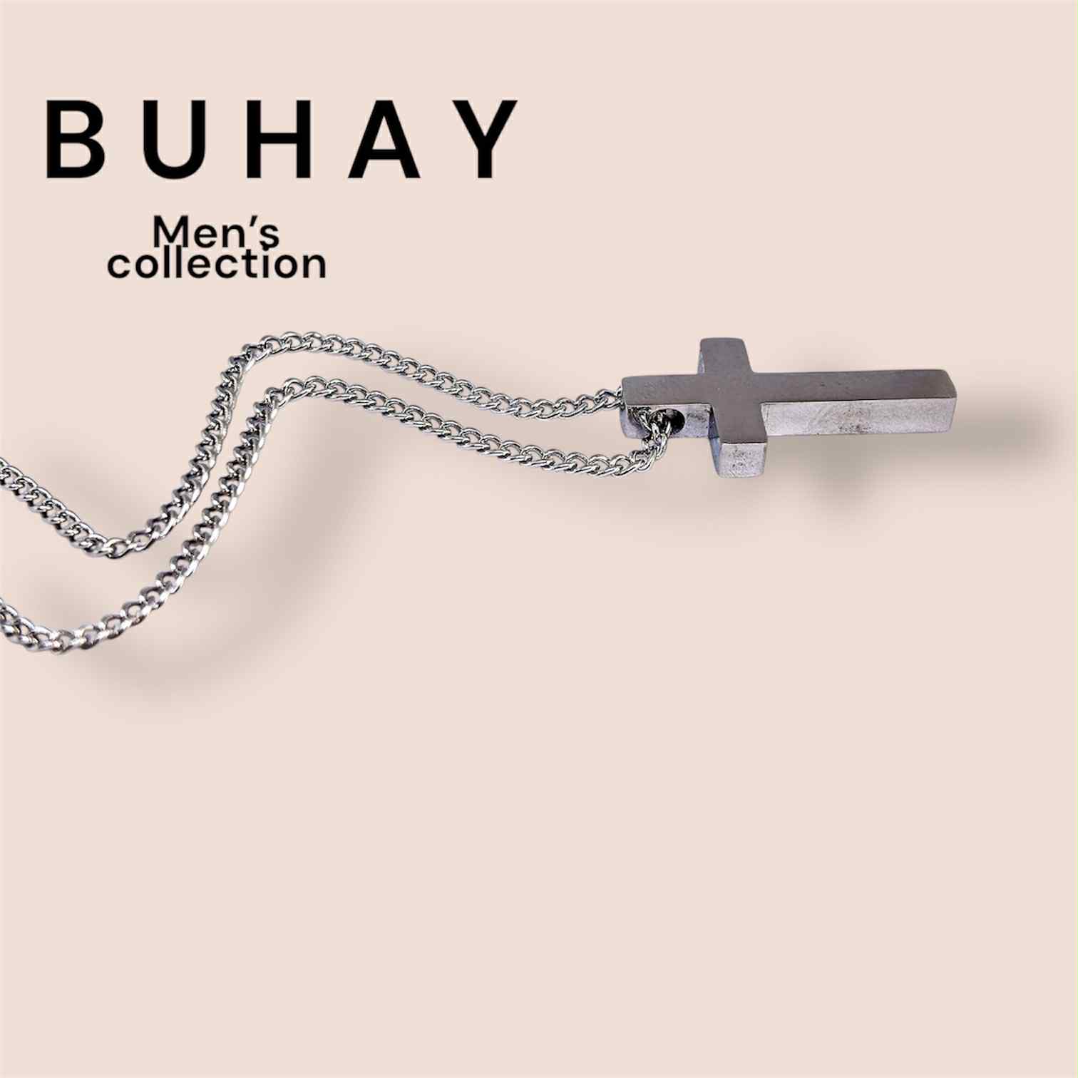 Αντρικό χειροποιήτο κολιέ , απο ανοξείδωτο ατσάλι. Με κλασική αλυσίδα και περαστό τετράγωνο σταυρό.