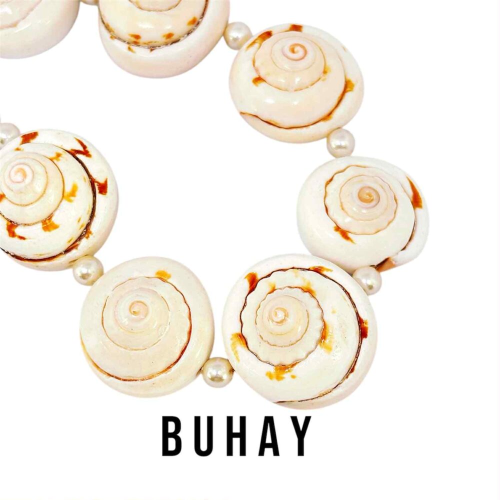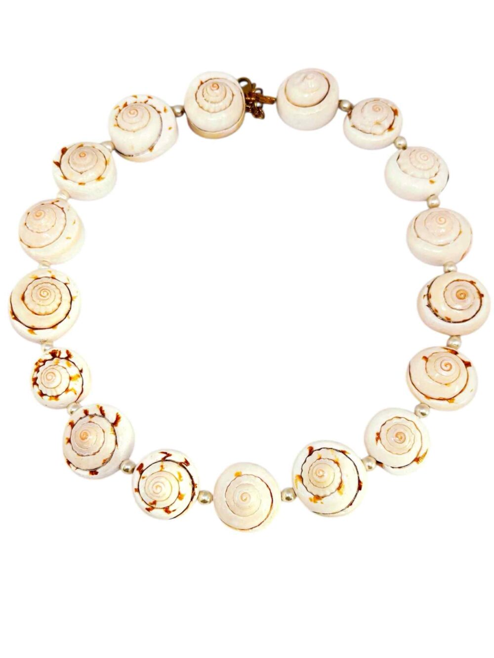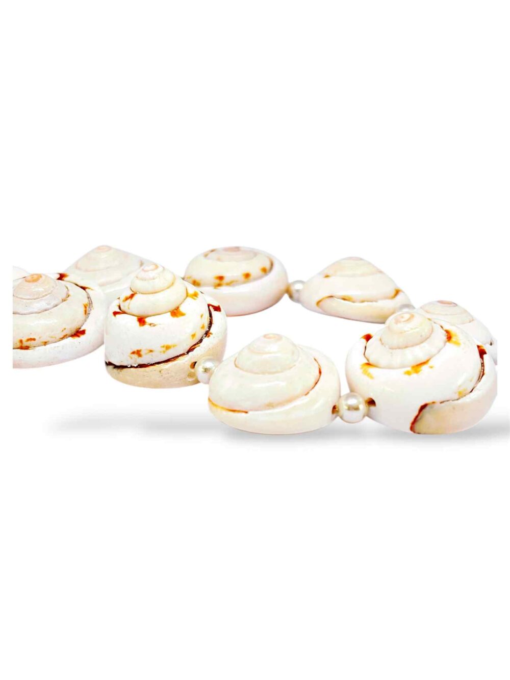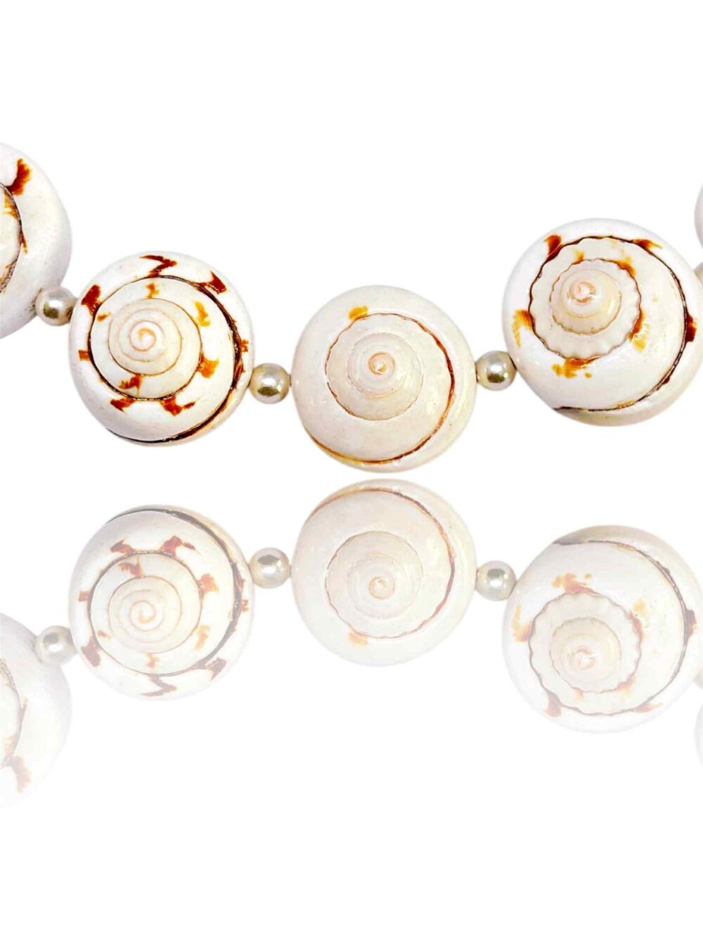 Χειροποιήτο κολιέ με φυσικό κοχύλι και μπέζ πέρλα. Δεμένο σε ατσάλι.