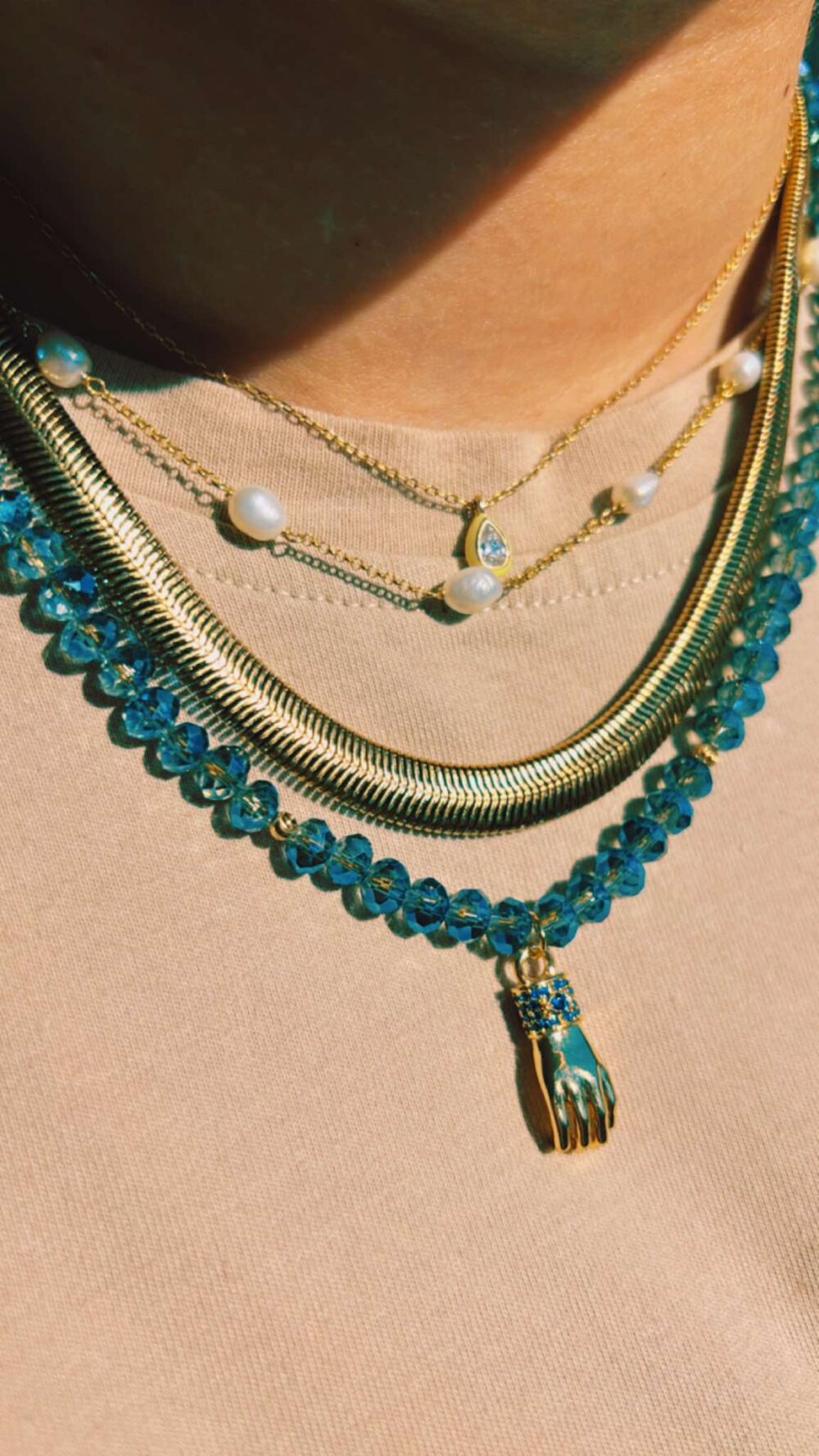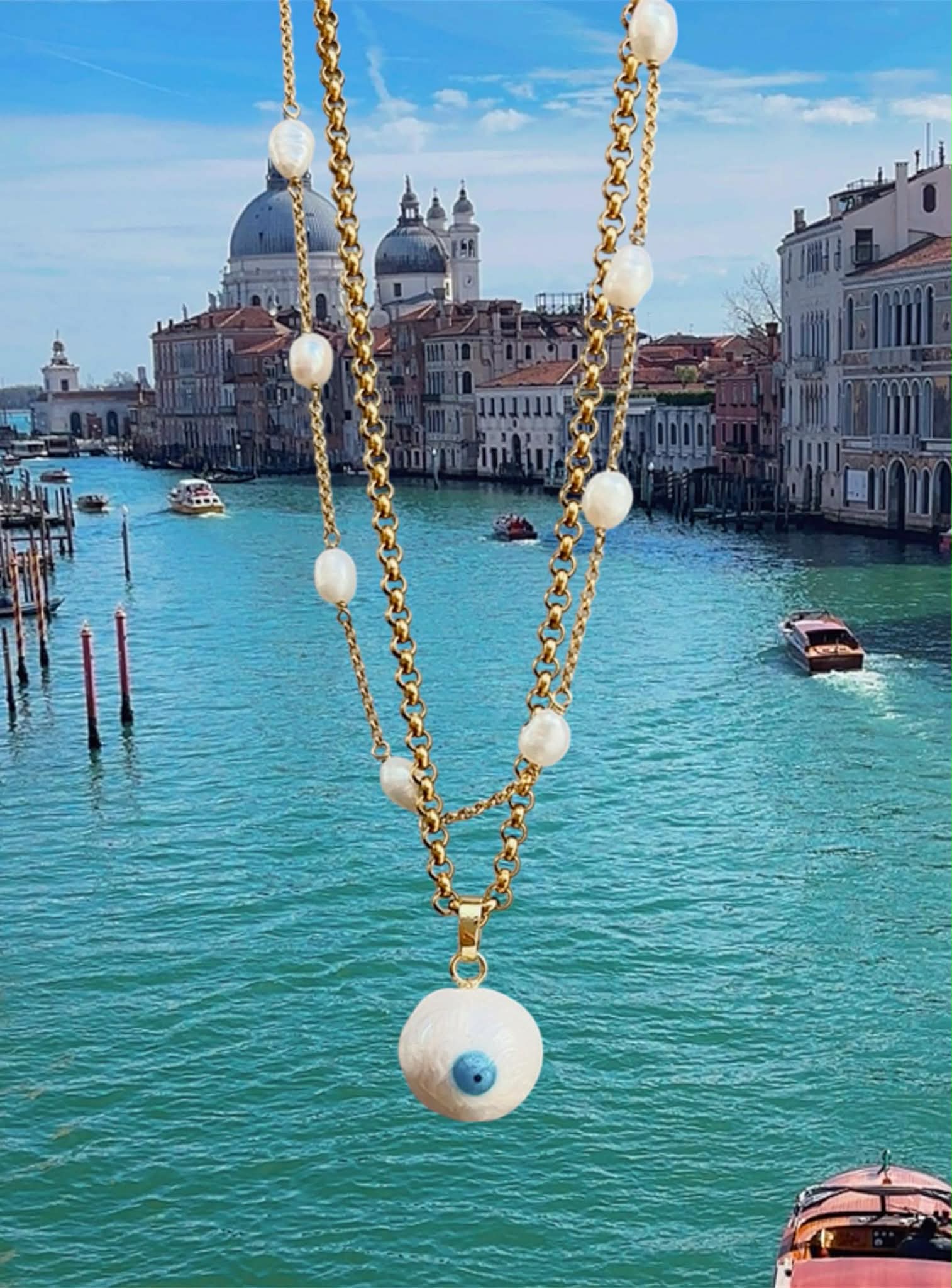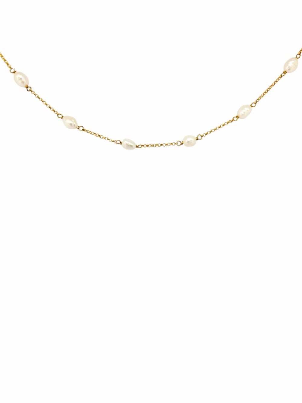 Χειροποιήτο κολιέ απο καθαρό ασήμι 925* , επιχρυσωμένο. Τύπου ροζάριο με μαργαριτάρια γλυκού νερού.