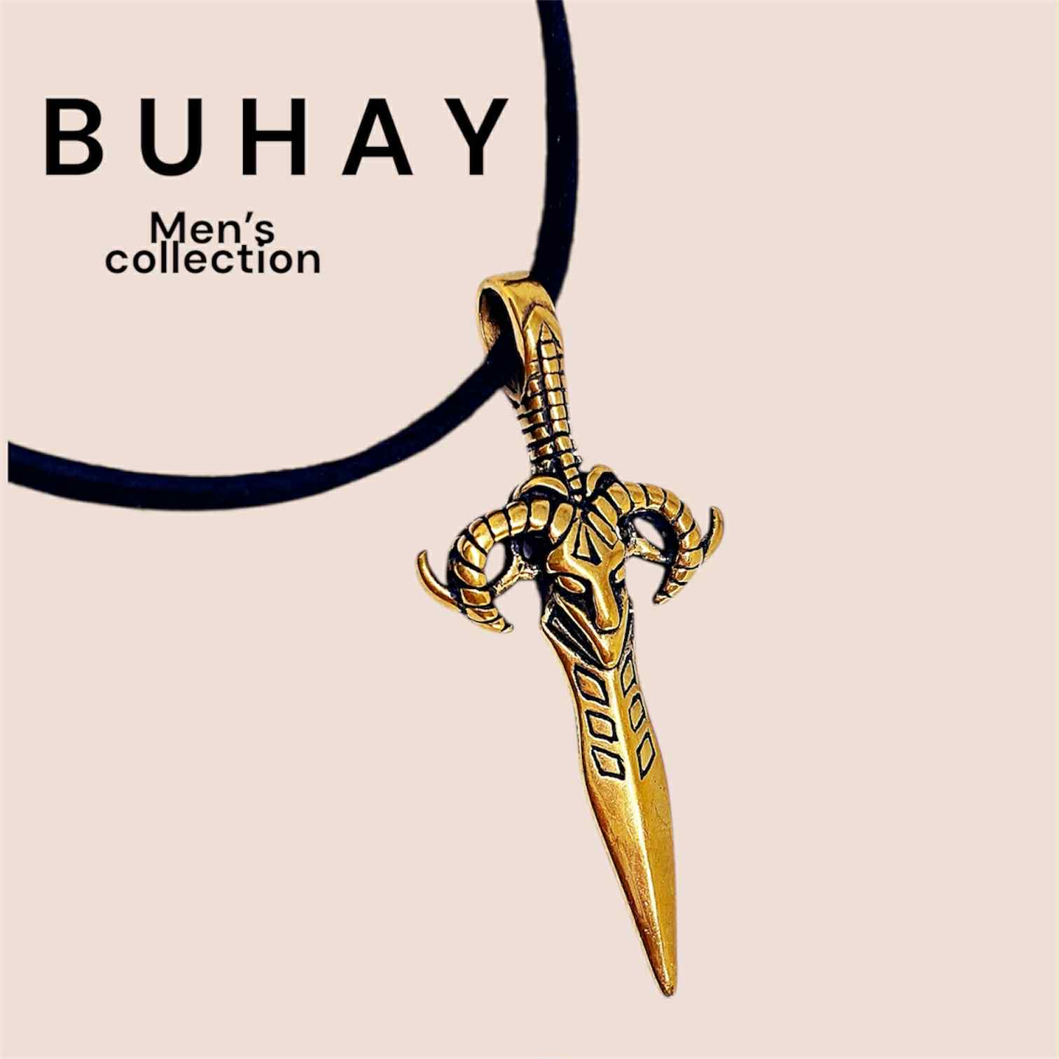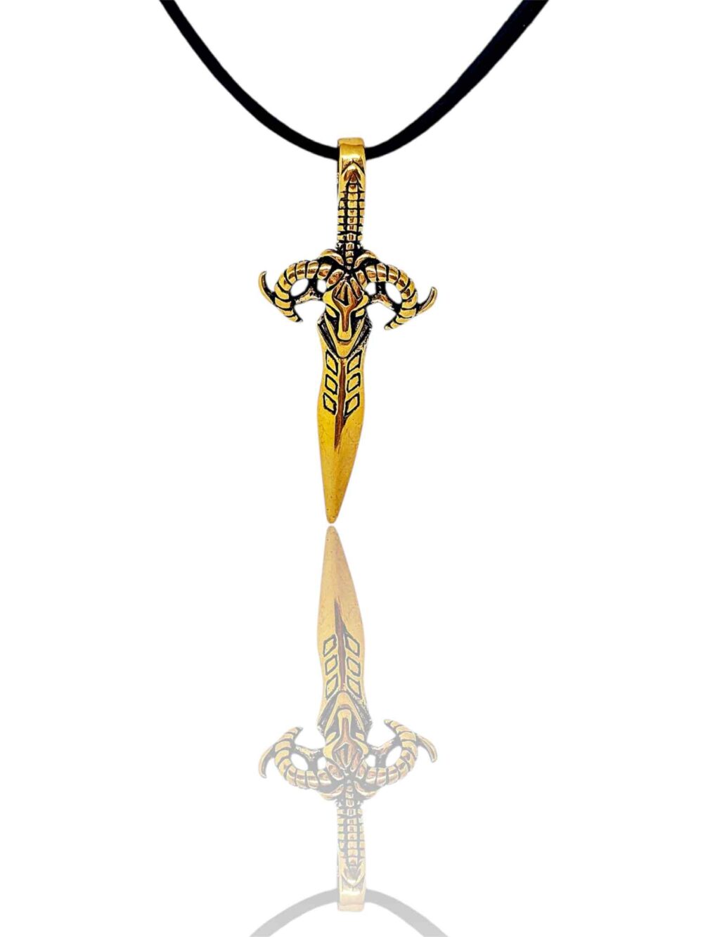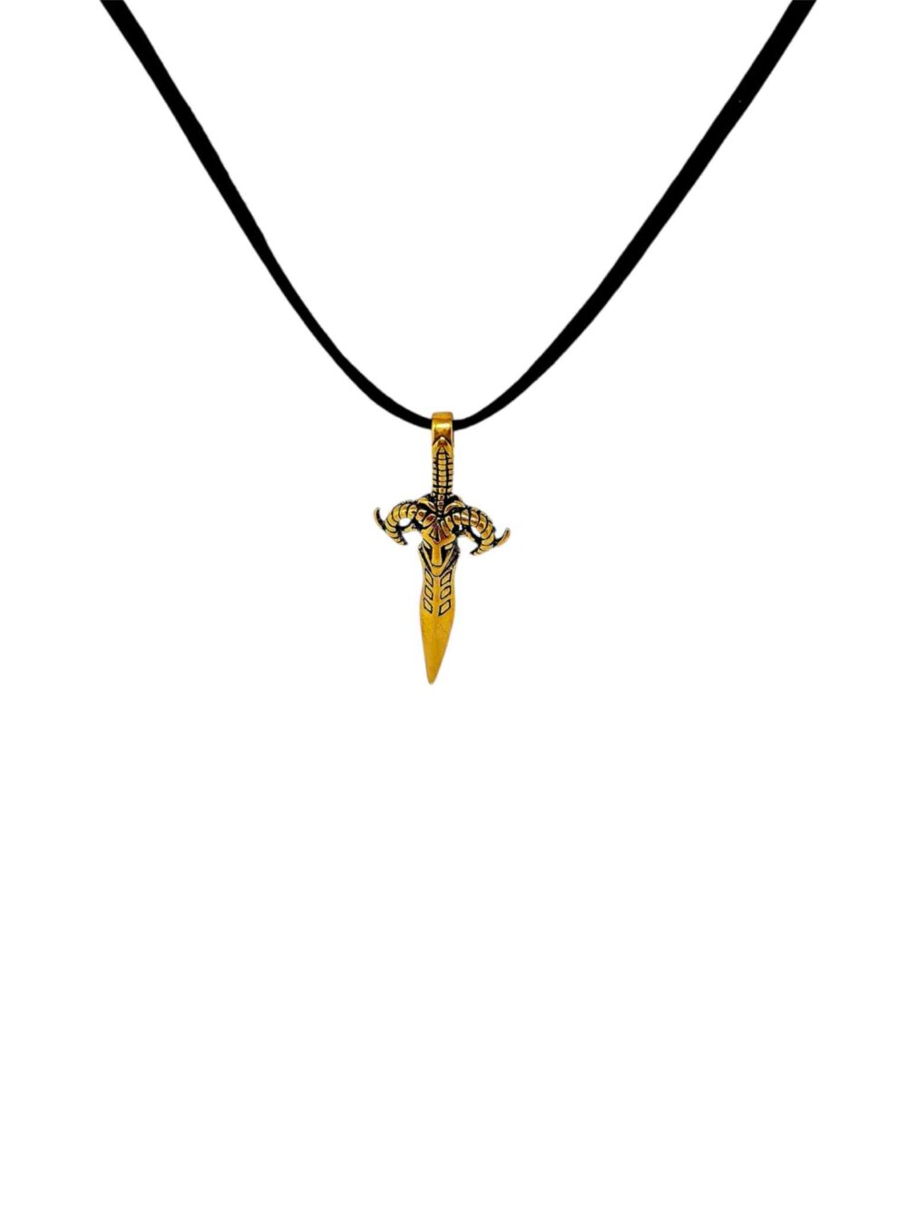 Αντρικό κολιέ απο ανοξείδωτο ατσάλι επιχρυσωμένο. Μάυρο κορδόνι κρέμεται ένα μενταγιόν σπαθί .