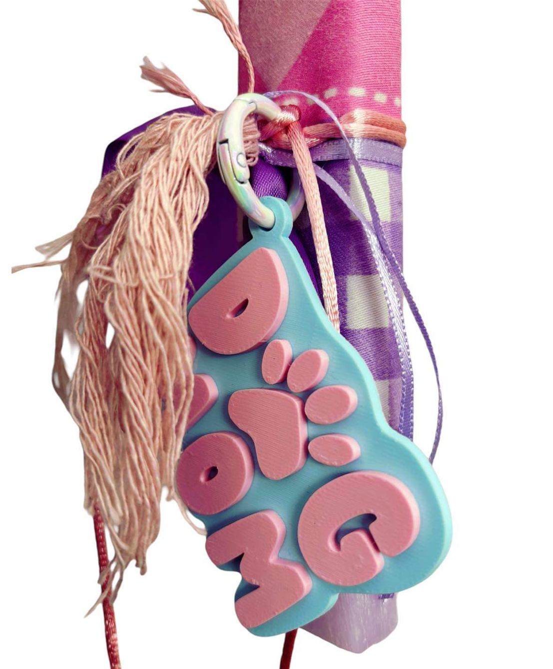 Χειροποιήτη Πασχαλινή πλακέ σαγρέ λαμπάδα , με χειροποιήτο 3d μπρελόκ .