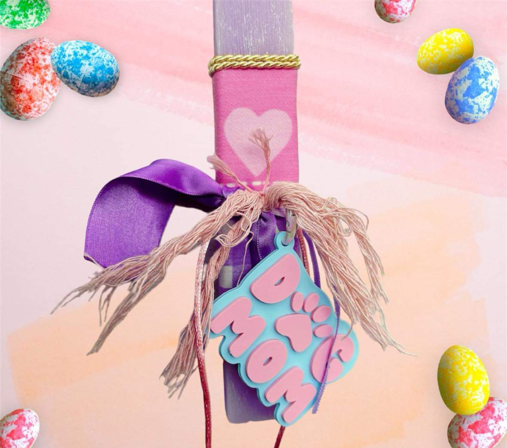 Χειροποιήτη Πασχαλινή στρογγυλή σαγρέ λαμπάδα , με χειροποιήτο 3d μπρελόκ μάτι. .