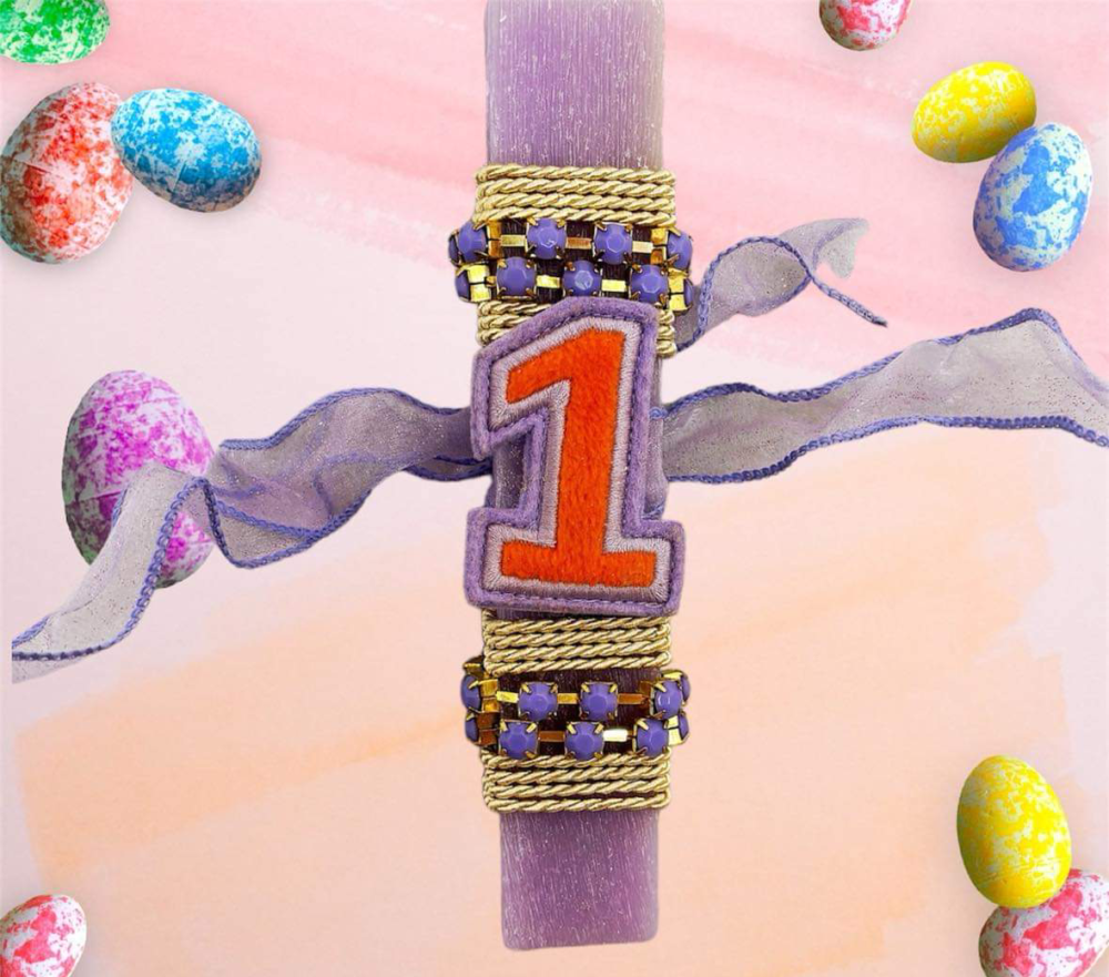 Χειροποιήτη Πασχαλινή πλακέ σαγρέ λαμπάδα , με υφασμάτινο διακοσμητικό.
