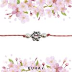 Χειροποιήτο βραχιόλι μαρτάκι , με λευκό-κόκκινο κορδόνι μαζί με μάυρο, περασμένος ένας κύλινδρος (τύπου ταυτότητα) με κόκκινο σμάλτο και ματάκι.