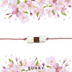 Χειροποιήτο βραχιόλι μαρτάκι , με λευκό-κόκκινο κορδόνι, λευκούς κεραμικούς κύβους, ένα μεταλικό κύβο και μακραμέ κούμπωμα.