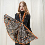Κασκόλ- εσάρπα μαλακής υφής σε βισκόζη με σχέδια λαχούρ και κρόσια στο τελέιωμα.