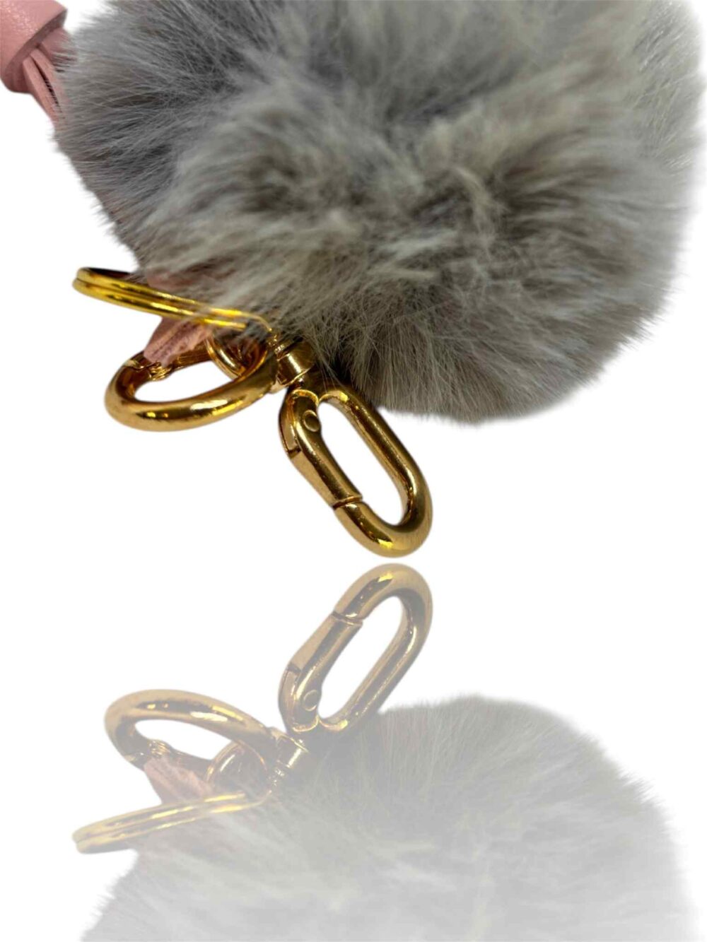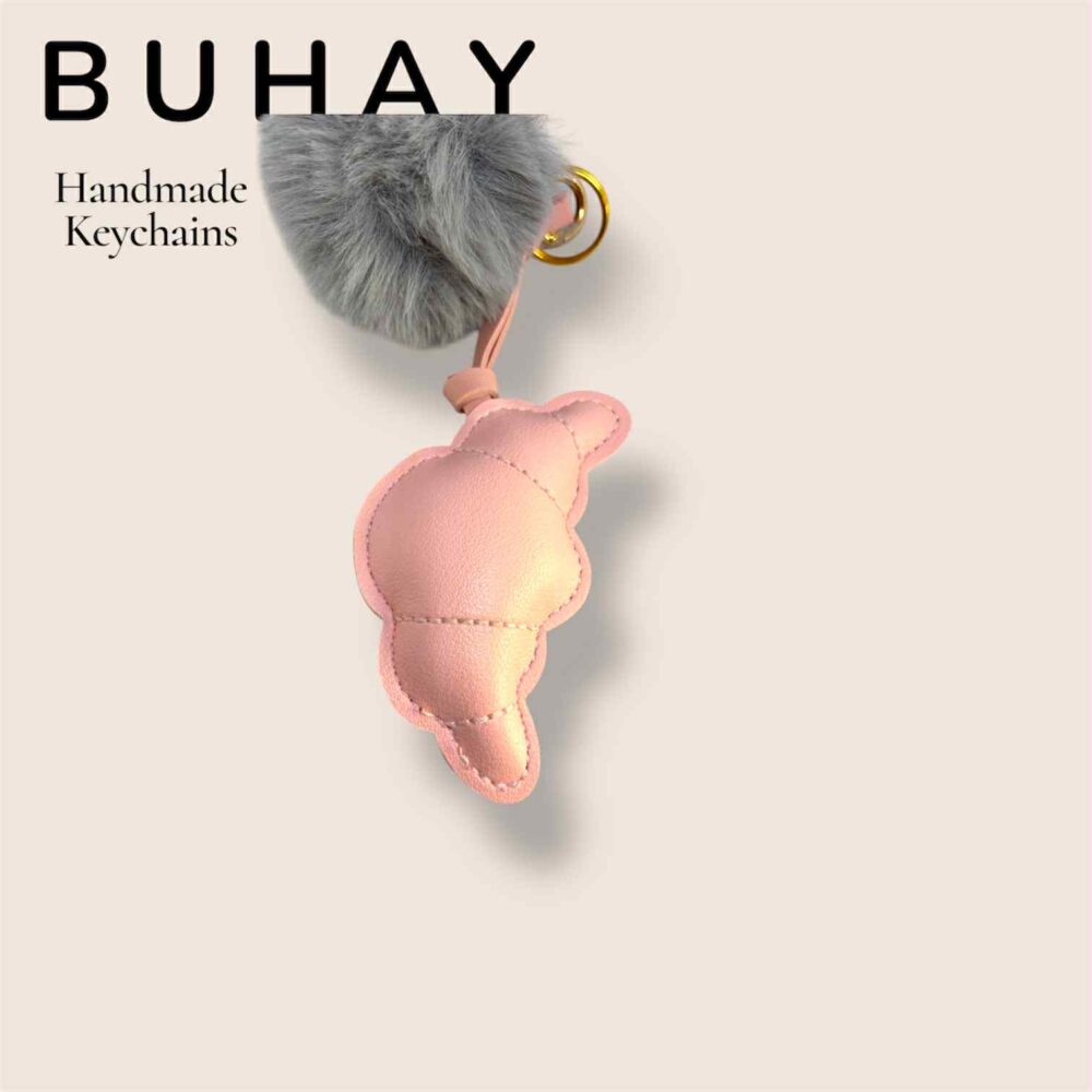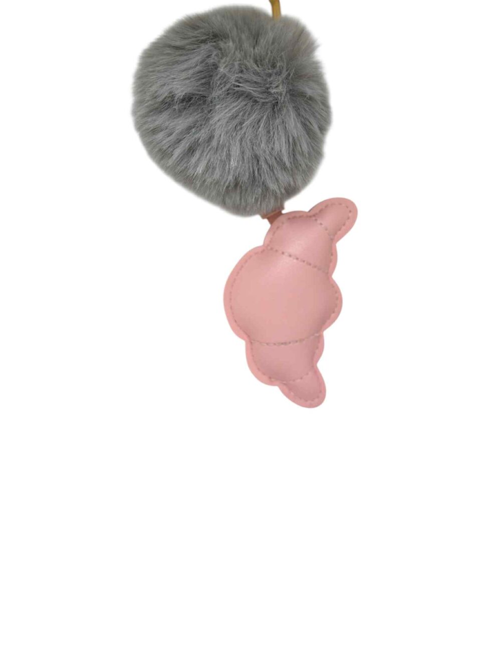 Χειροποιήτο μπρελόκ , με γκρί φούντα ,ρόζ κρουασάν απο οικολογικό δέρμα.