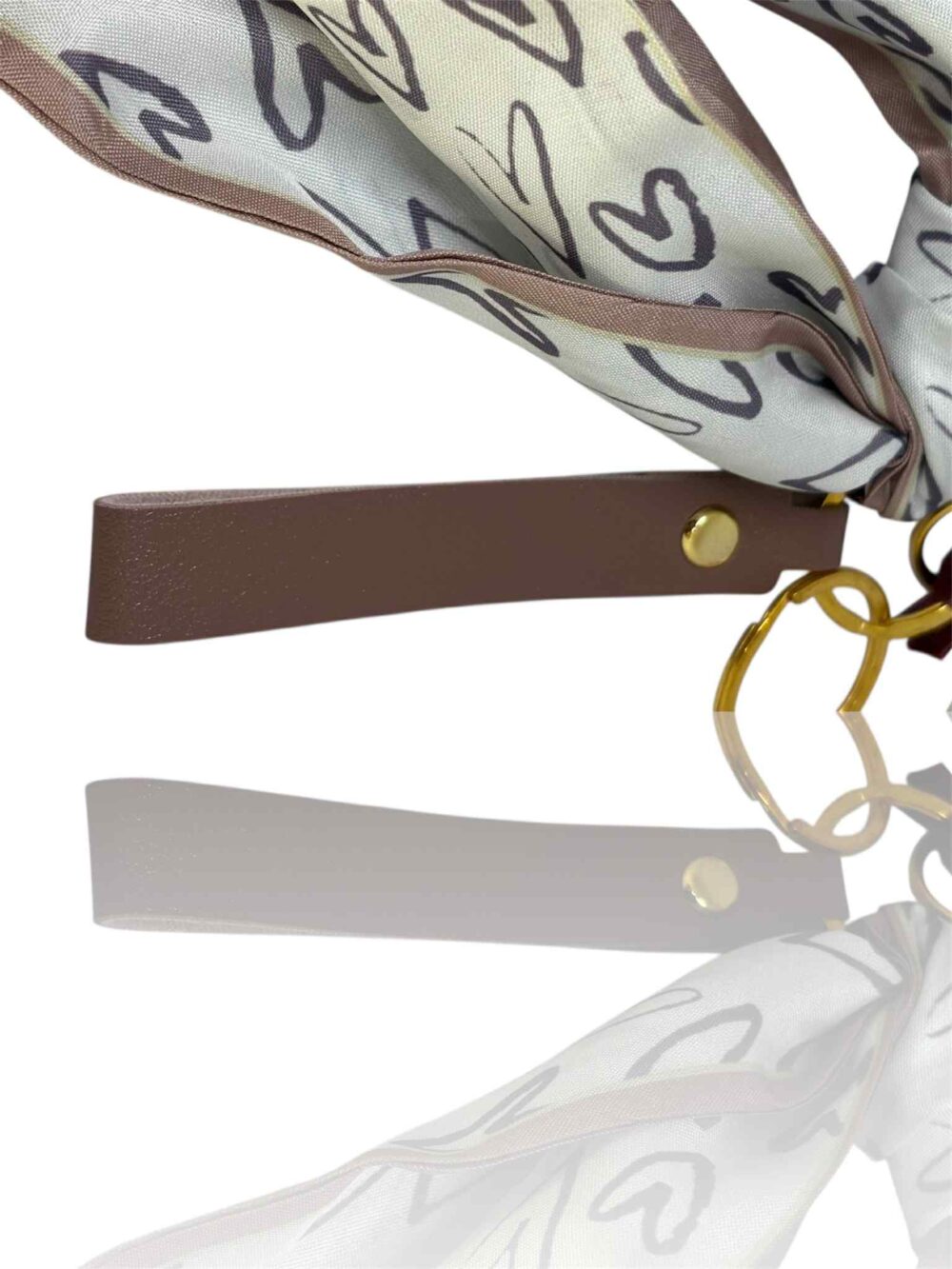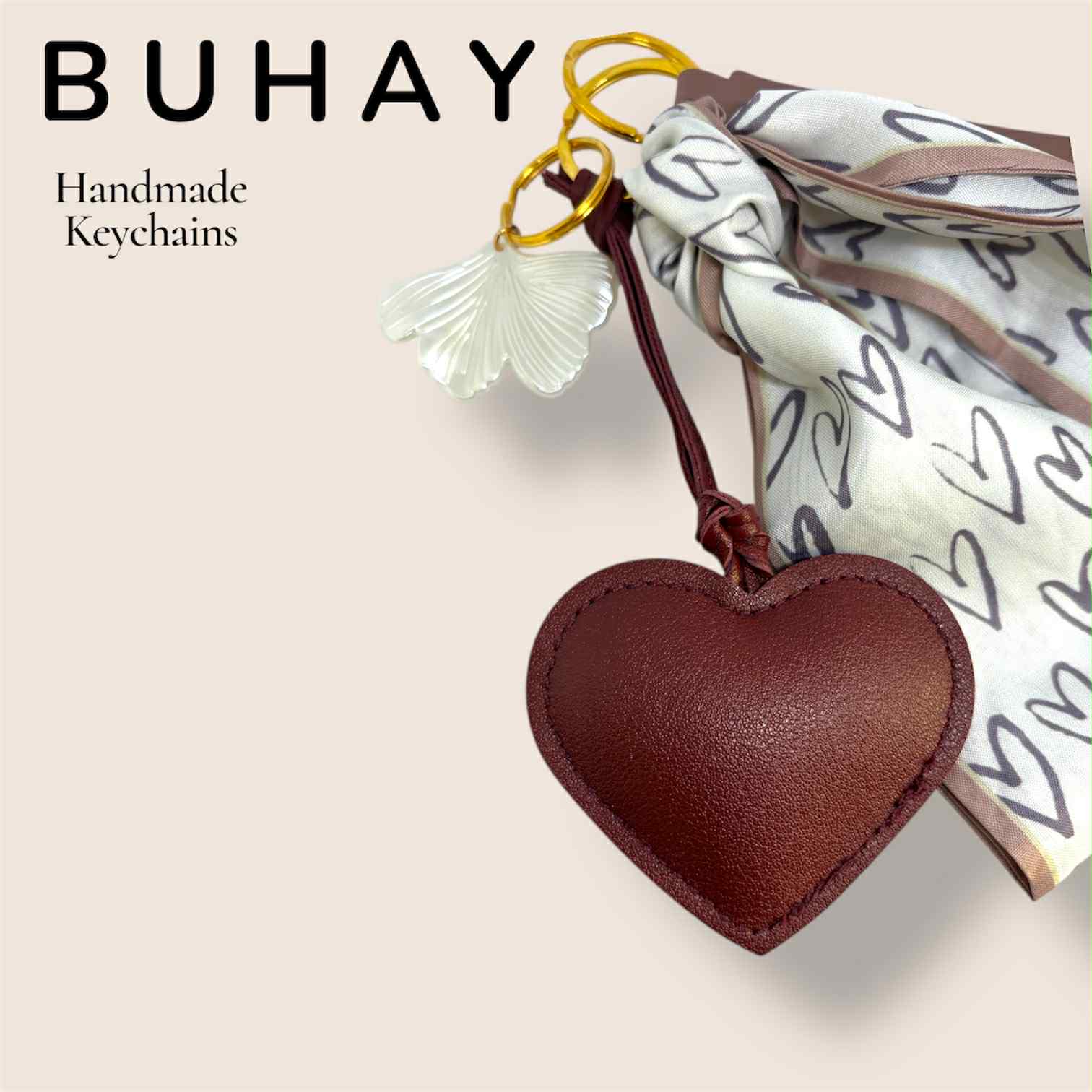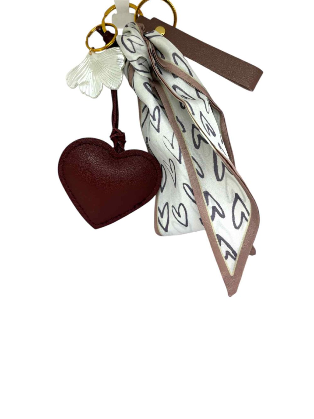 Χειροποιήτο μπρελόκ , μπορντό καρδιά , μαντήλι δεμένο και φίλντισι φυλλο.