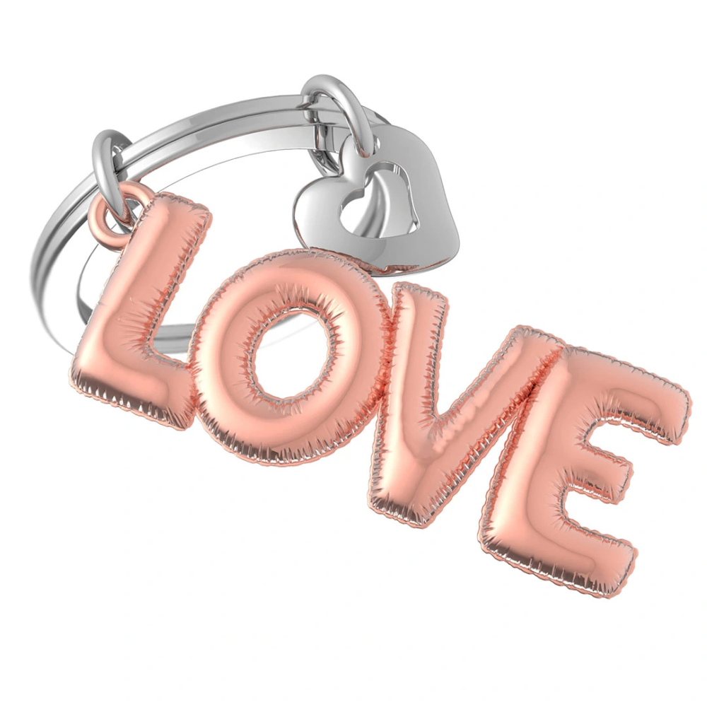 Εντυπωσιακό μπρελόκ ,με μεγάλο κρίκο ,κρέμεται μπαλόνι που σχηματίζει LOVE σε ρόζ χρυσό.