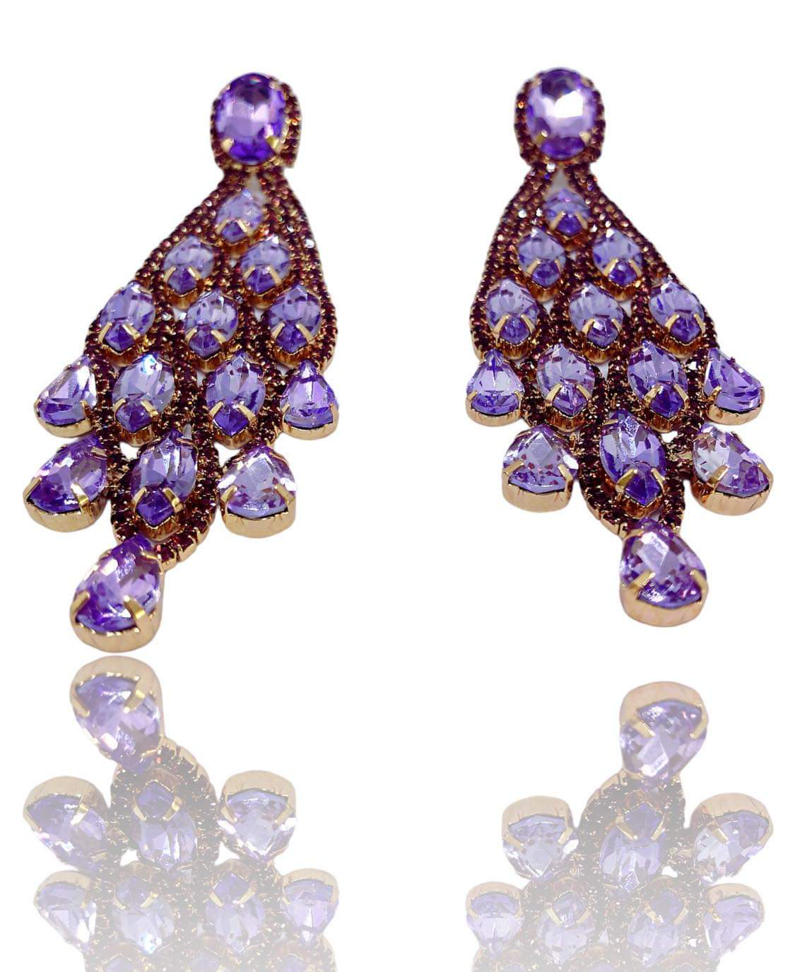 Σκουλαρίκια απο ορύχαλκο επιχρυσωμένα. Μακριά με μόβ κρύσταλλα.