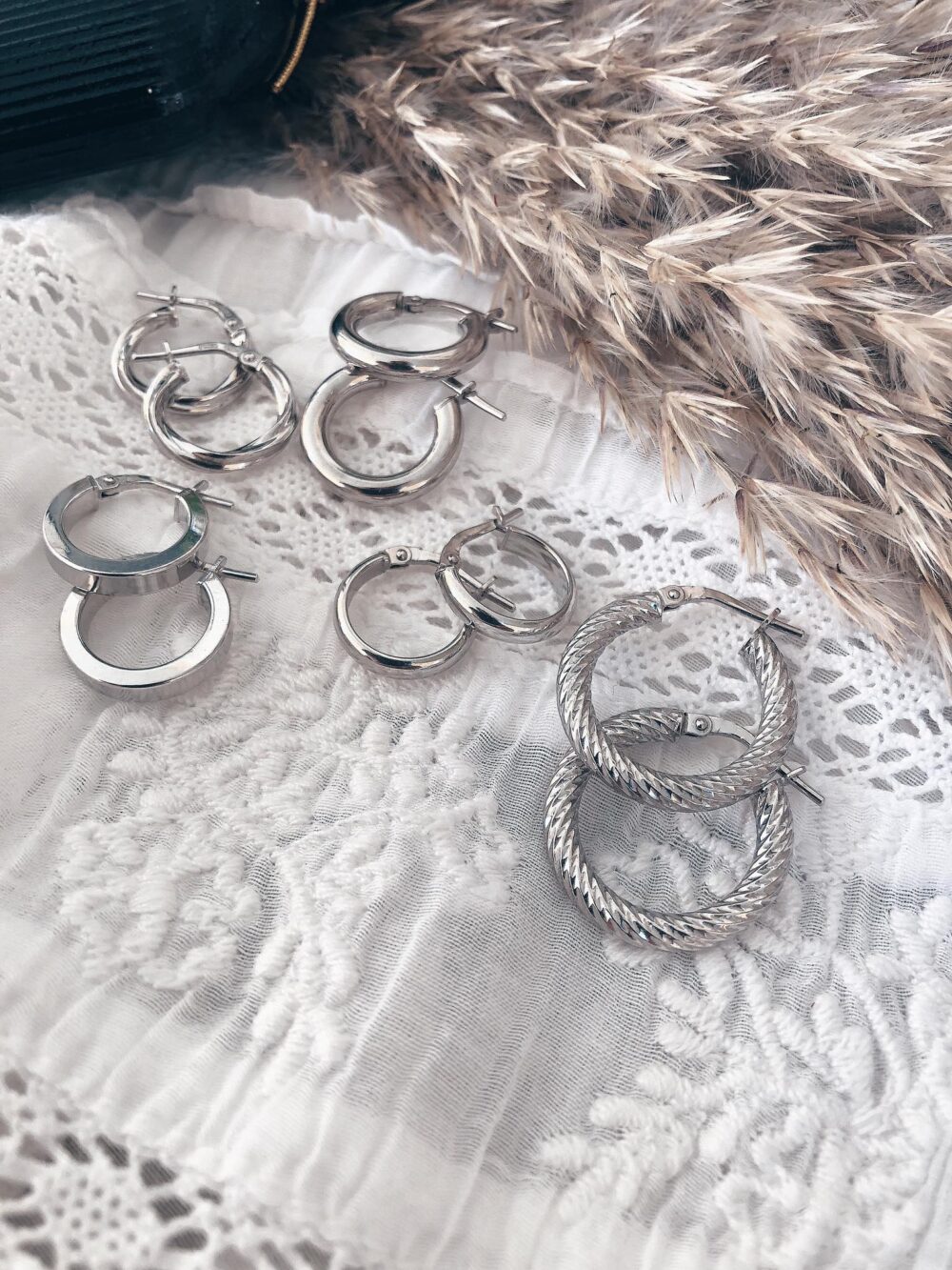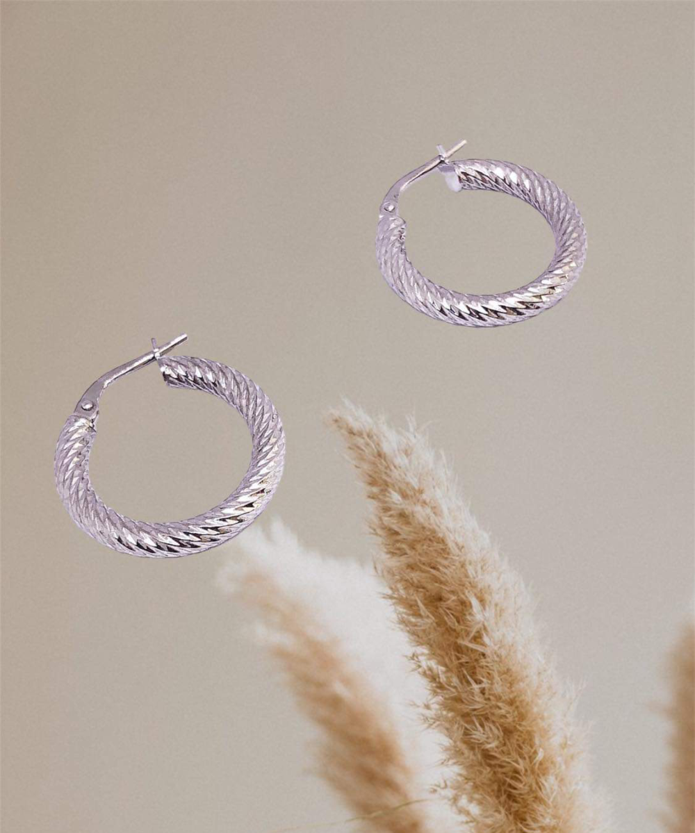 Σκουλαρίκια απο καθαρό ασήμι 925* . Κρικάκια σαγρέ σχέδιο.
