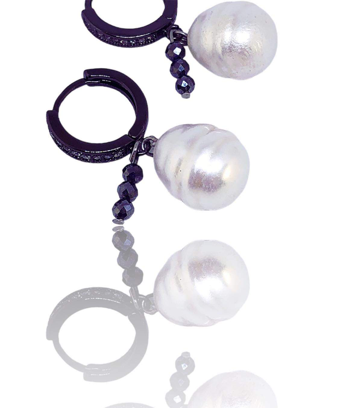 Χειροποιήτα σκουλαρίκια απο οικολογικό ορύχαλκο , με μαυρη πατίνα. Κρικάκια με ζιργκόν που κρέμεται μια πέρλα και κρυσταλλάκια .