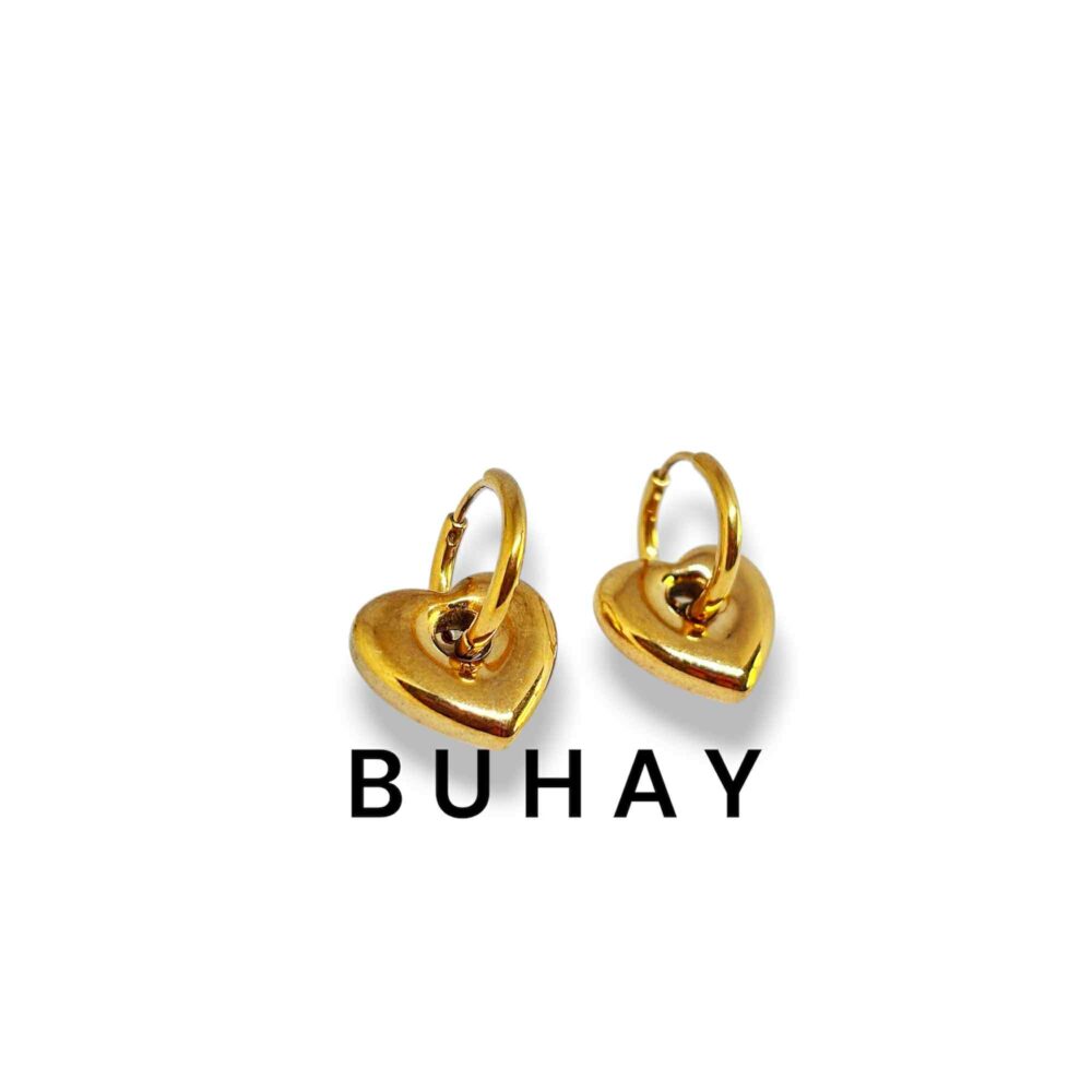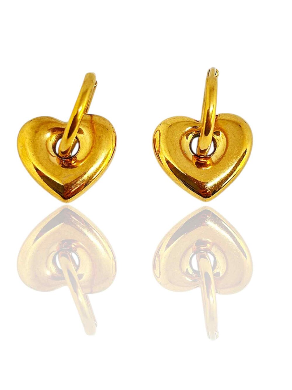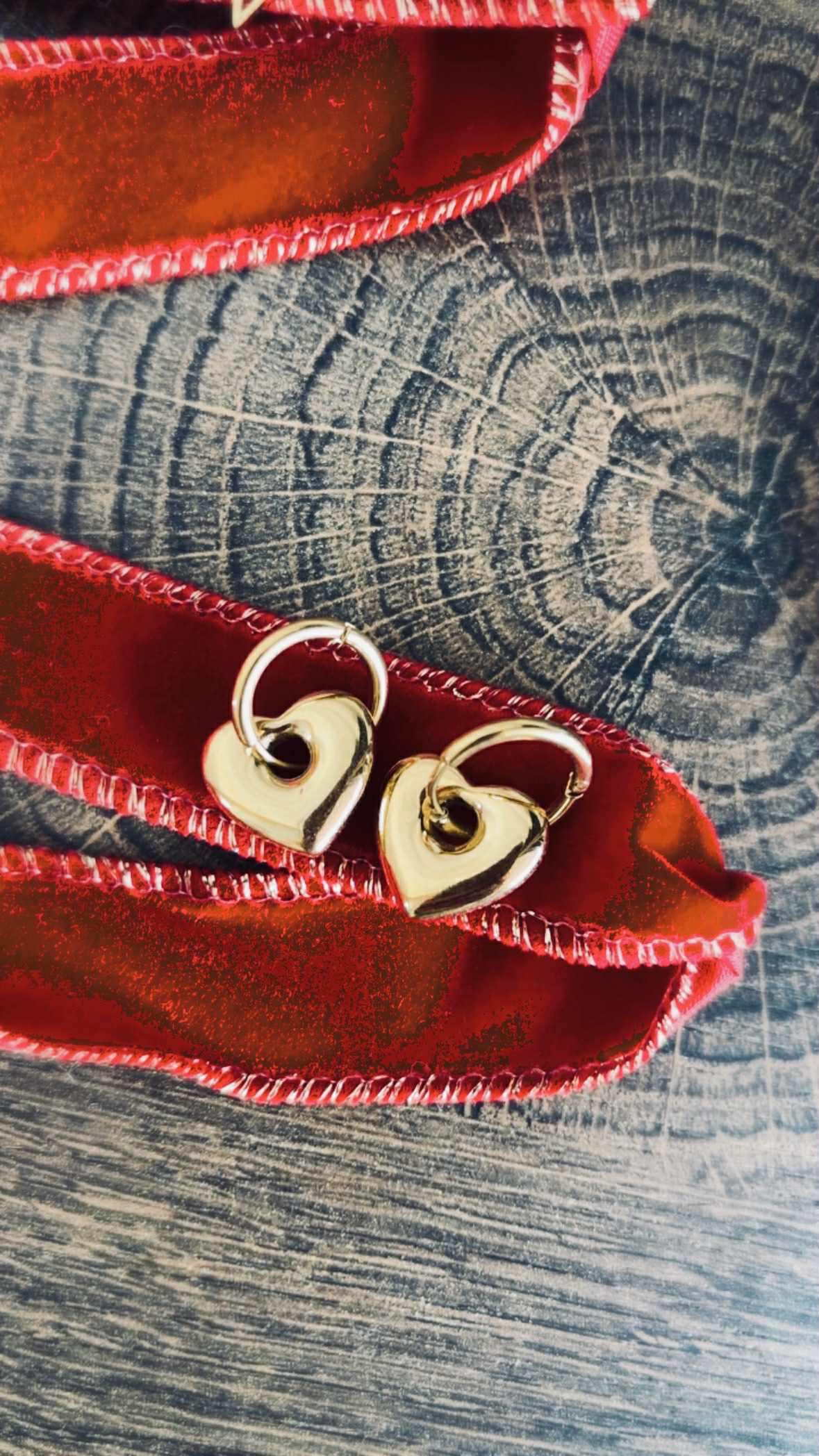 Χειροποιήτα σκουλαρίκια απο ανοξείδωτο ατσάλι , επιχρυσωμένο.Κρικάκι με περασμένη μια μπούλ καρδιά.
