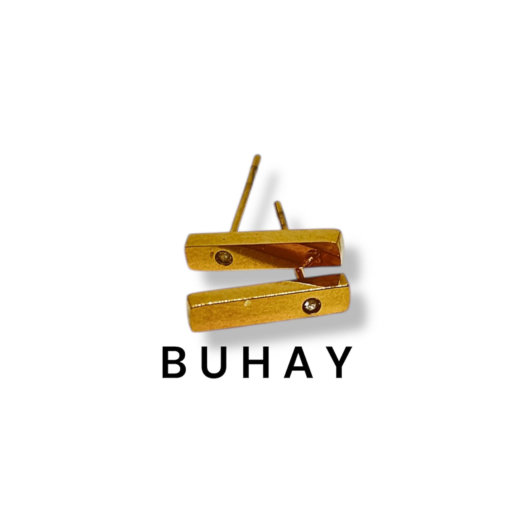 Σκουλαρίκια απο ανοξείδωτο ατσάλι , επιχρυσωμένο.Μπάρα με ζιργκόν.