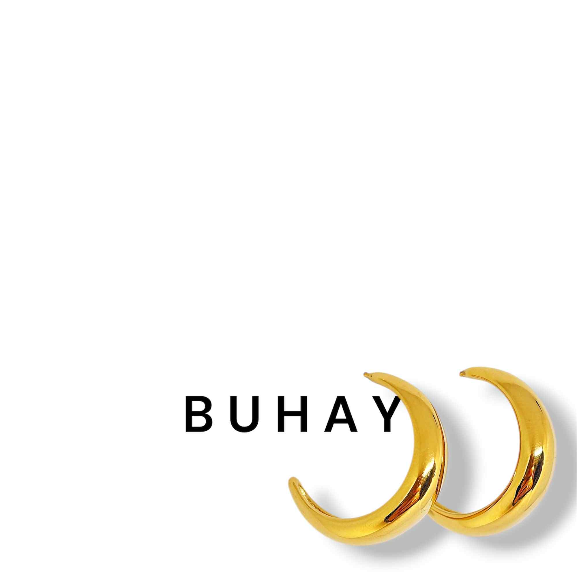 Σκουλαρίκια απο ανοξείδωτο ατσάλι , επιχρυσωμένο. Κρίκος μισοφέγγαρο με εντυπωσιακό σχέδιο τύπου μπούλ .