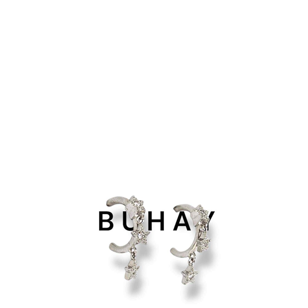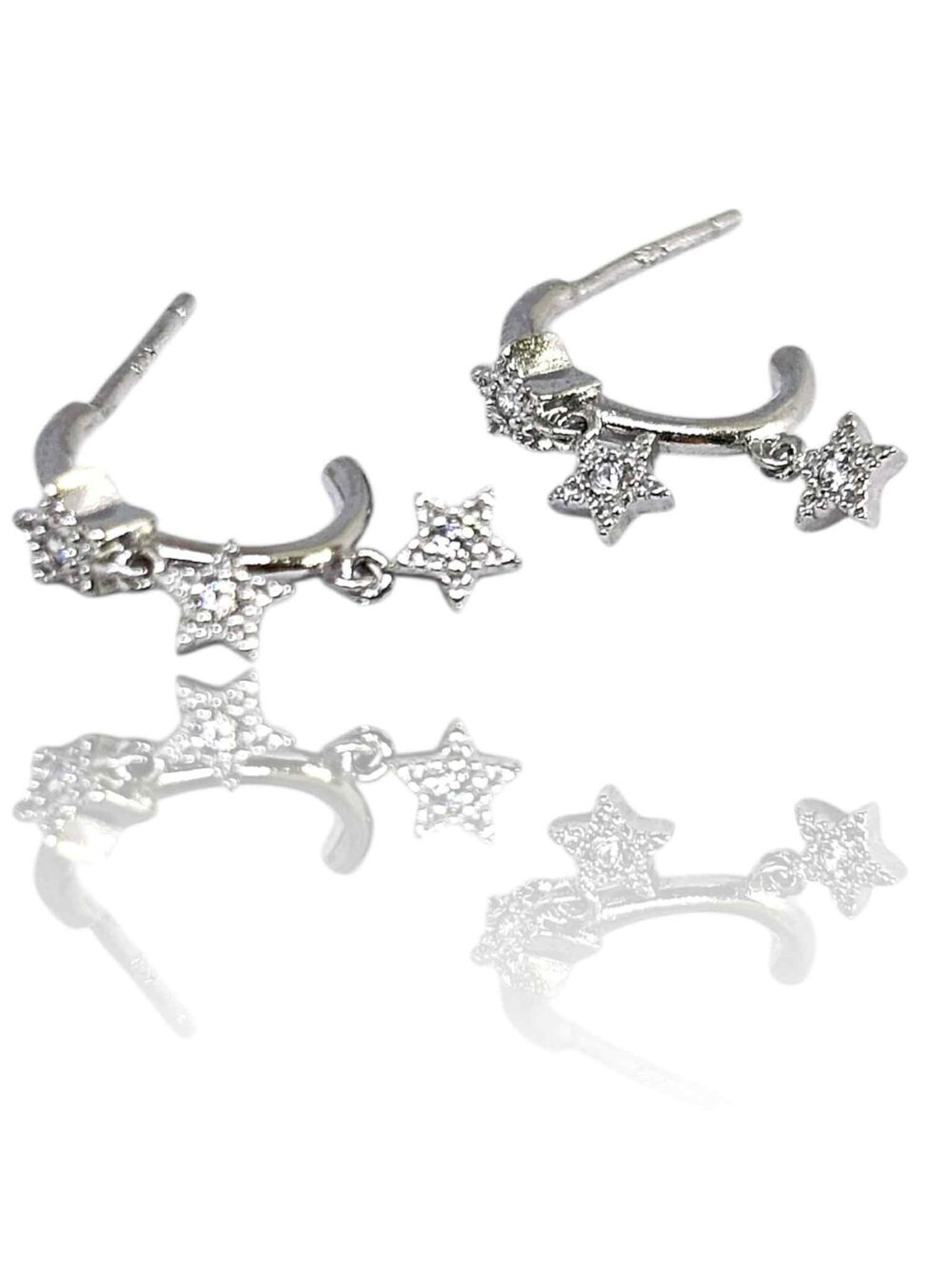 Σκουλαρίκια απο ασήμι 925* , πλατινωμένο. Καρφάκια μισό κρικάκι με τρία αστεράκια που κρέμονται.