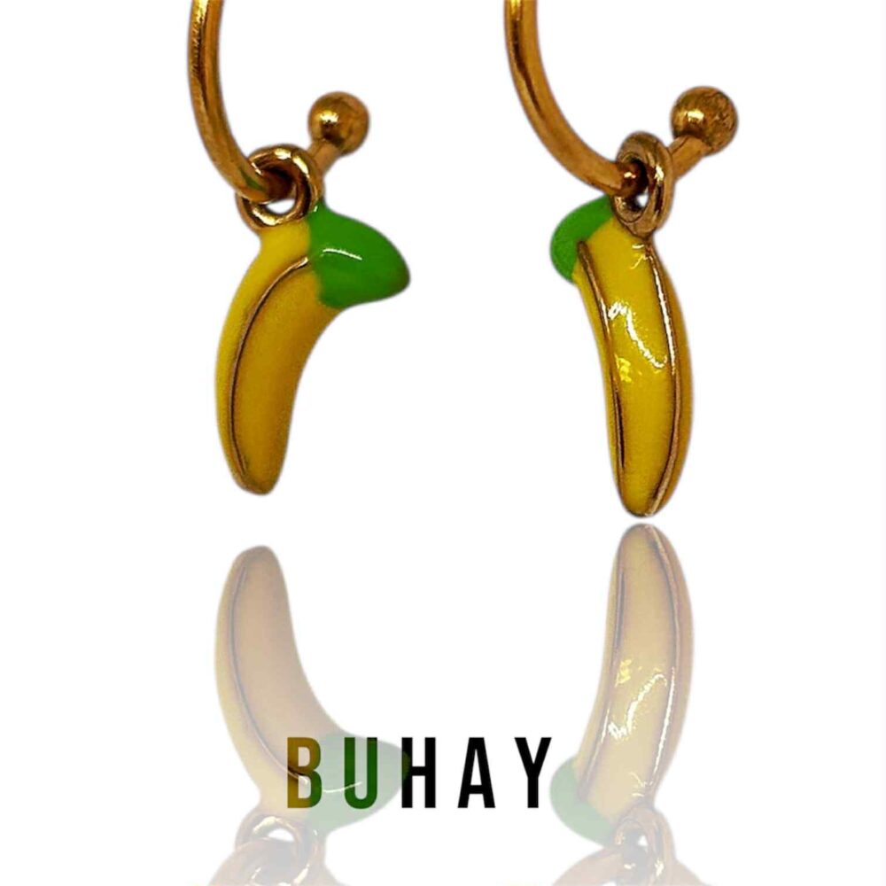 Χειροποιήτα σκουλαρίκια απο ανοξείδωτο ατσάλι , επιχρυσωμένα. Κρικάκια με περαστή μπανάνα με σμάλτο.