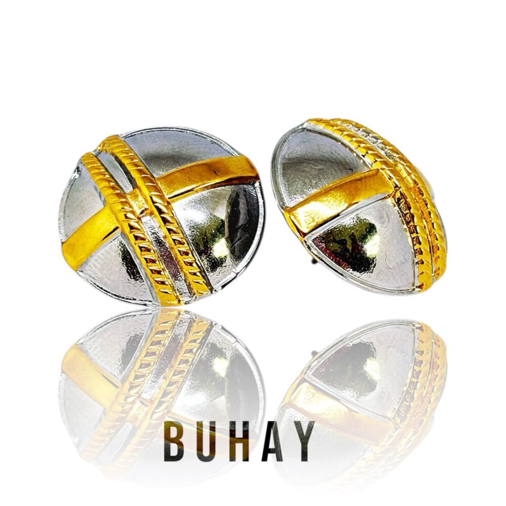 Σκουλαρίκια απο ανοξείδωτο ατσάλι , δίχρωμα. Στρογγυλό με επίχρυσο σχέδιο.