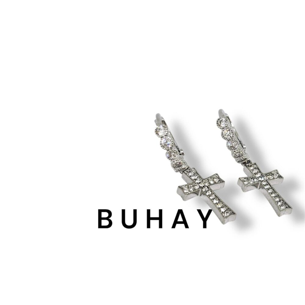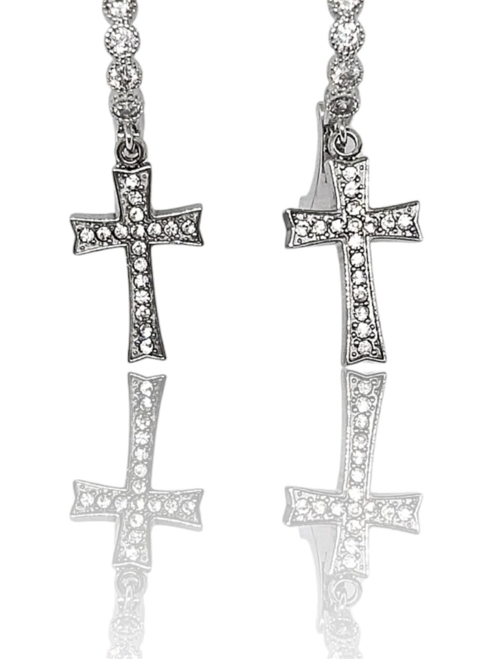 Χειροποιήτα σκουλαρίκια απο ανοξείδωτο ατσάλι. Κρικάκια με ζιργκόν , κρέμεται σταυρουδάκι με ζιργκόν.