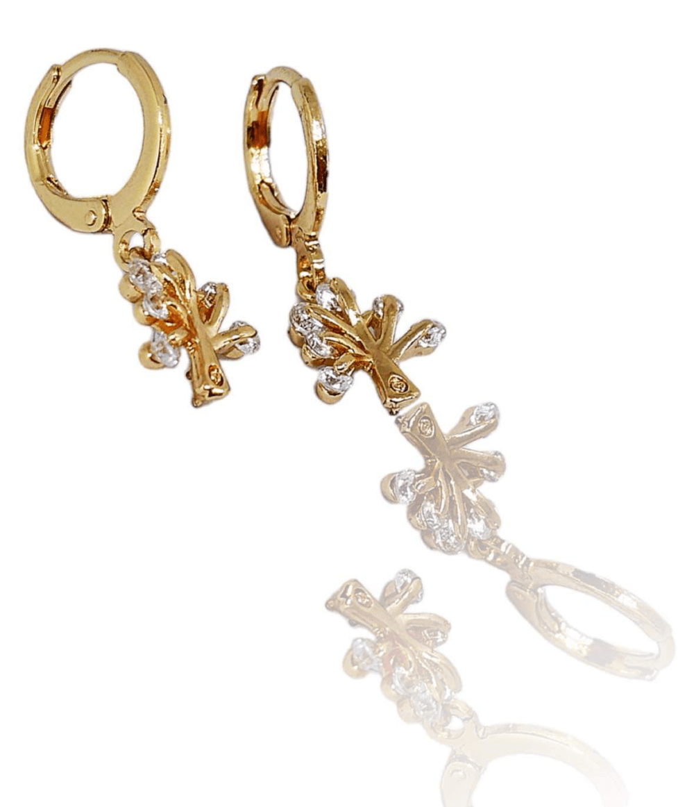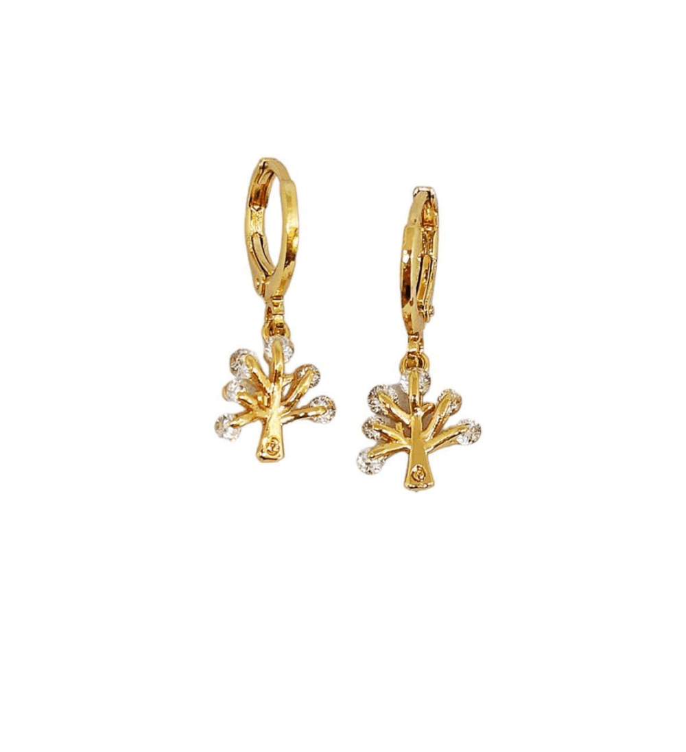 Χειροποιήτα σκουλαρίκια απο οικολογικό ορύχαλκο, επιχρυσωμένο. Κρικάκια με κρεμαστό μοτίφ σε σχήμα δέντρου με ζιργκόν.