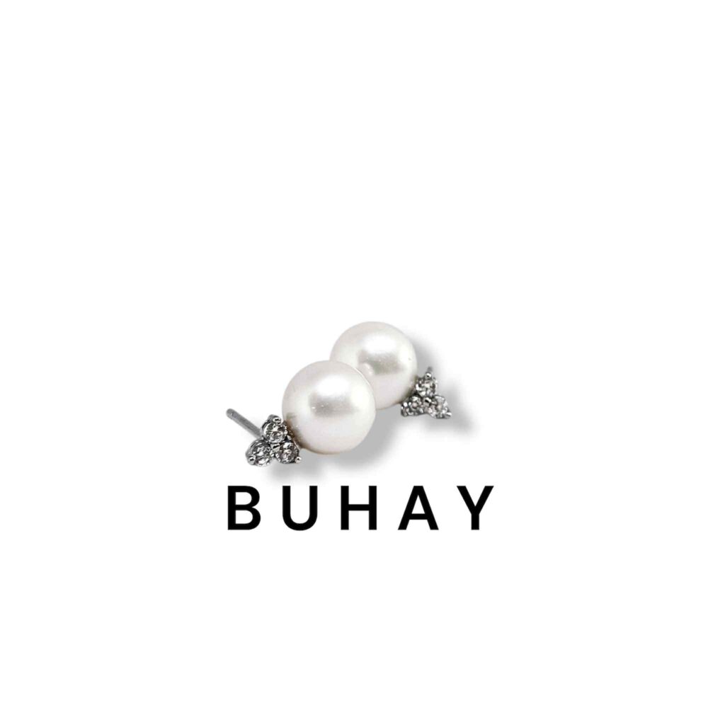 Σκουλαρίκια απο ασήμι 925* , πλατινωμένο. Καρφάκια με τρία ζιργκόν και μαργαριτάρι.