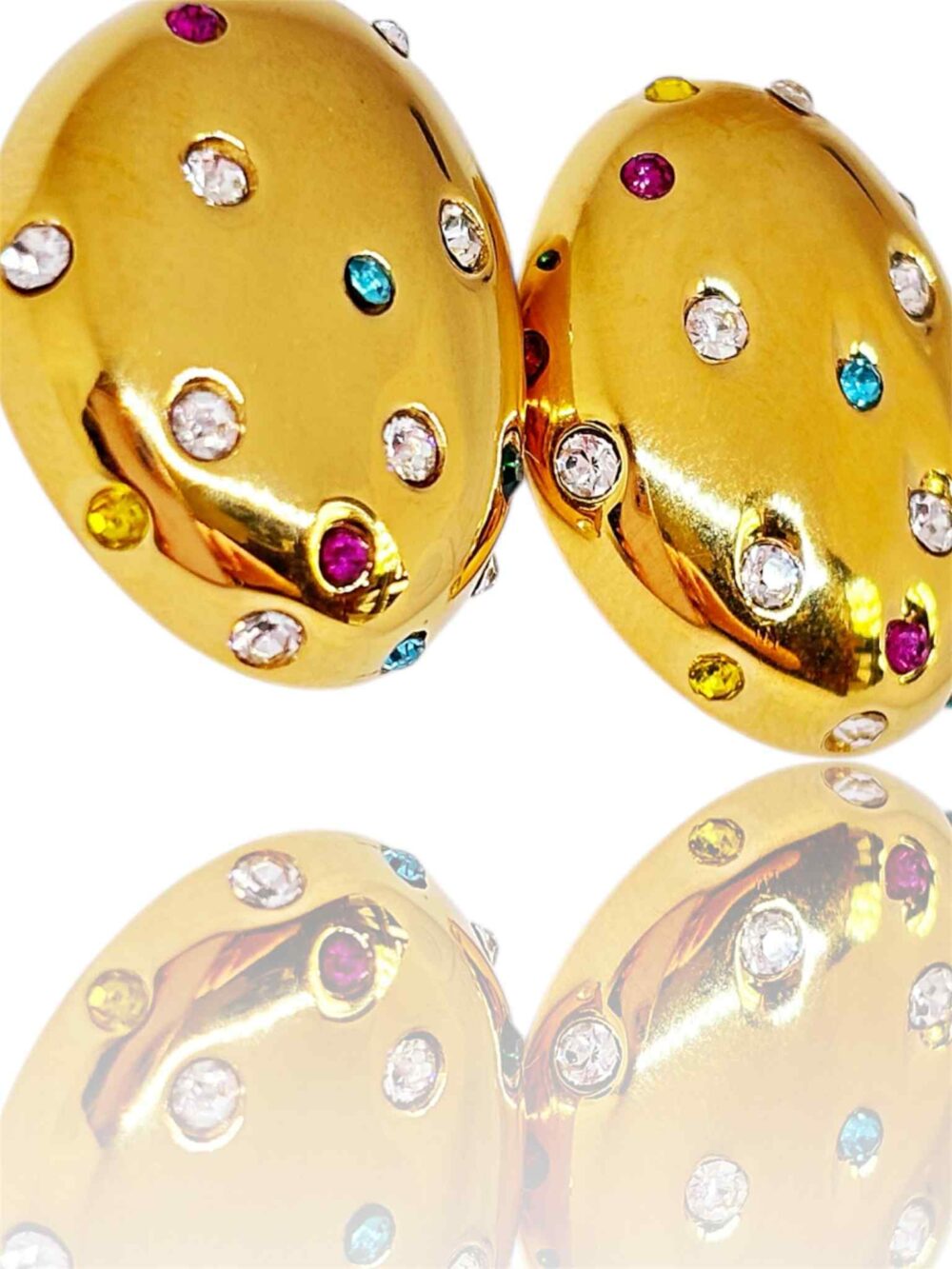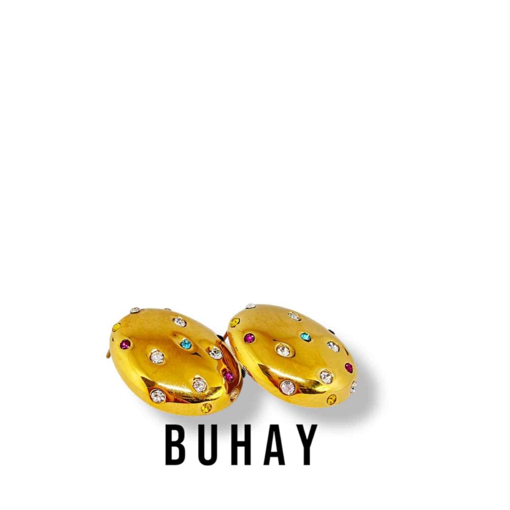 Σκουλαρίκια απο ανοξείδωτο ατσάλι , επιχρυσωμένο.Οβάλ καρφάκια με πολύχρωμα ζιργκόν.