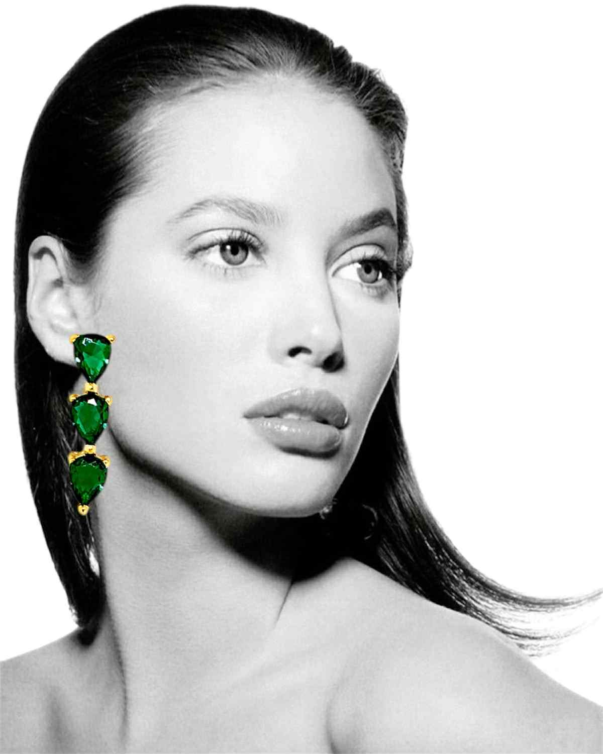 Σκουλαρίκια απο ασήμι 925* , επιχρυσωμένο. Καρφάκια με πράσινα ζιργκόν σε σχήμα δάκρυ.