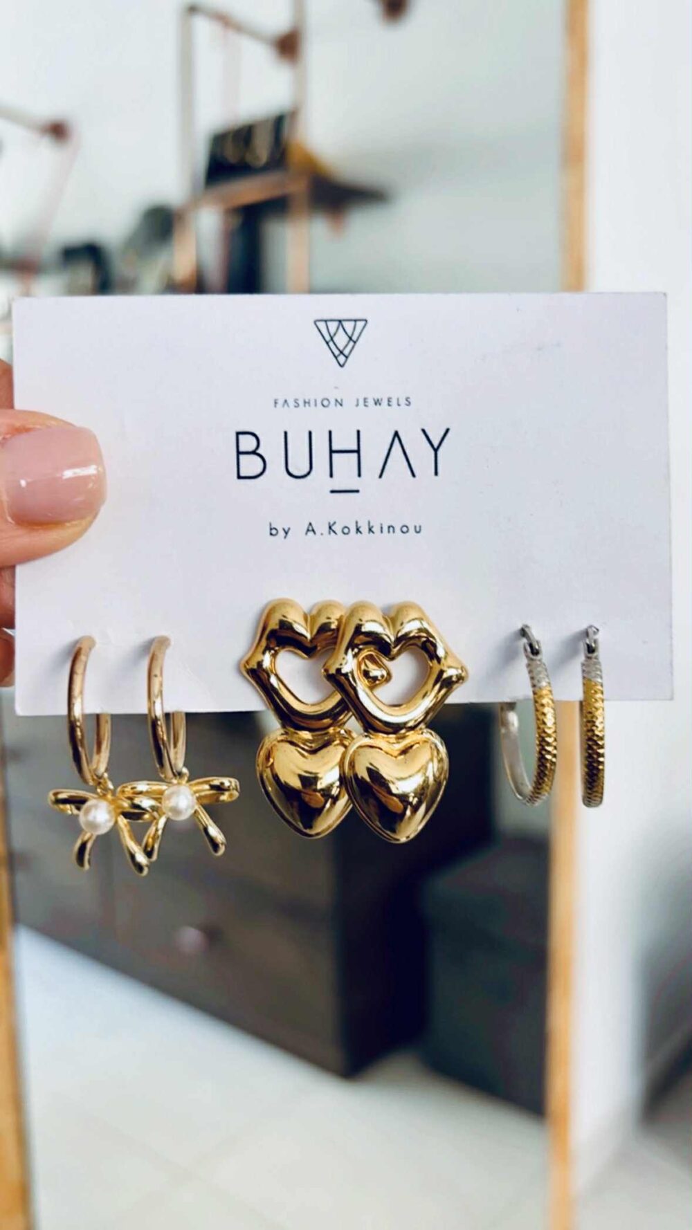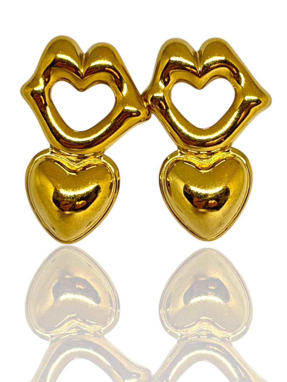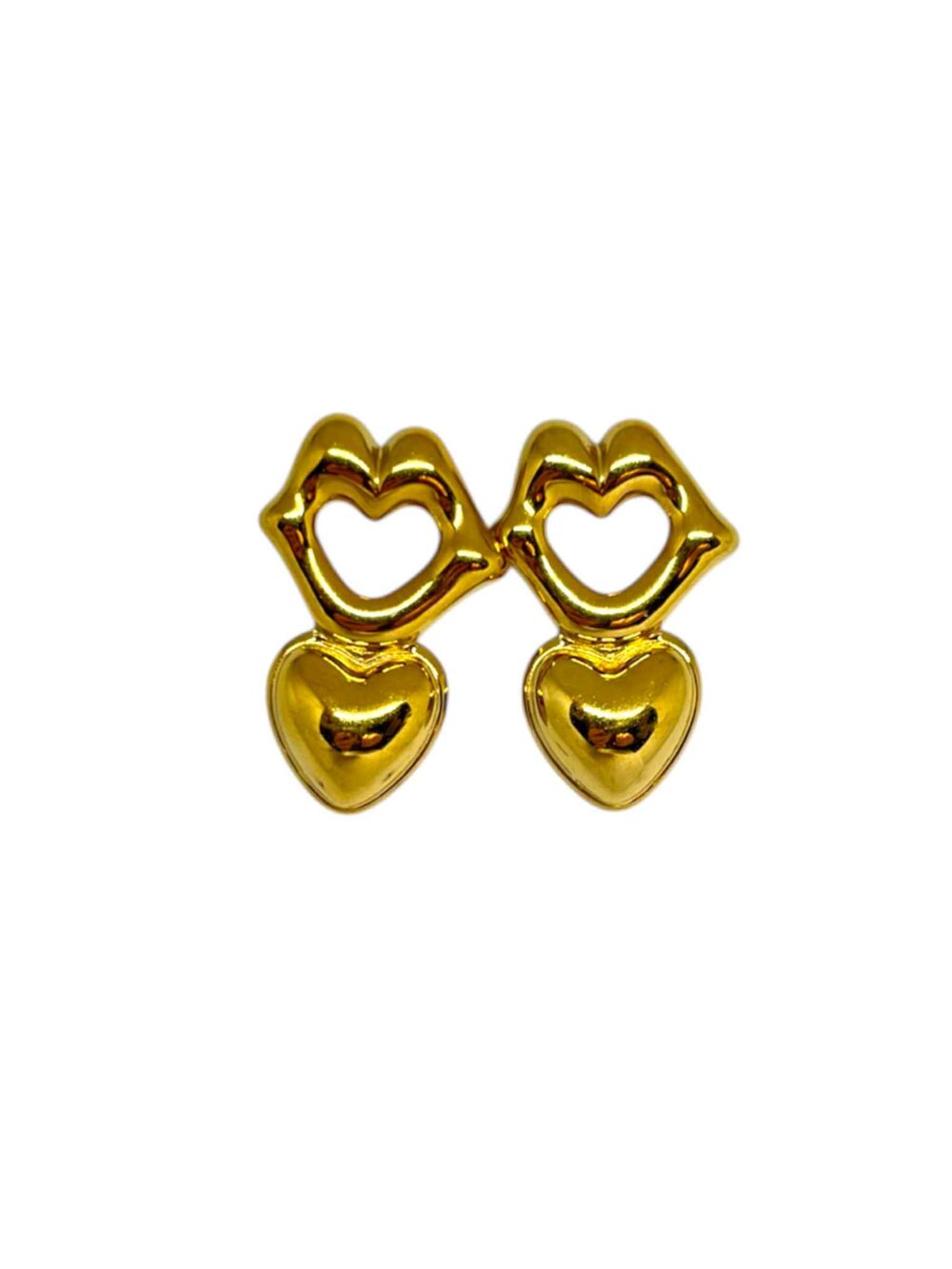 Σκουλαρίκια απο ανοξείδωτο ατσάλι , επιχρυσωμένα. Καρφωτά με με καρδιά και χείλη.
