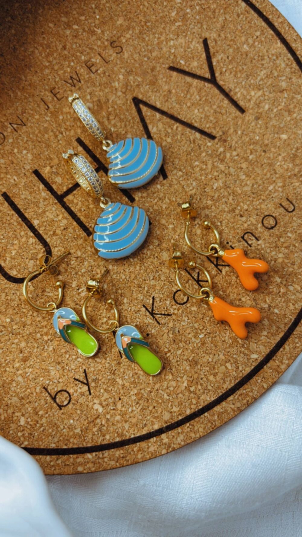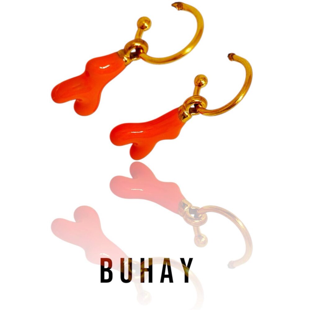 Χειροποιήτα σκουλαρίκα απο ανοξείδωτο ατσάλι , επιχρυσωμένα. Κρικάκια με περαστό ένα κοράλι με πορτοκαλί σμάλτο.