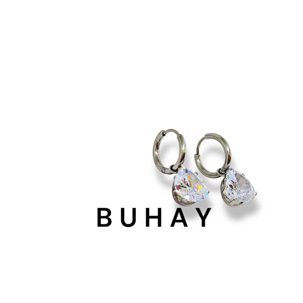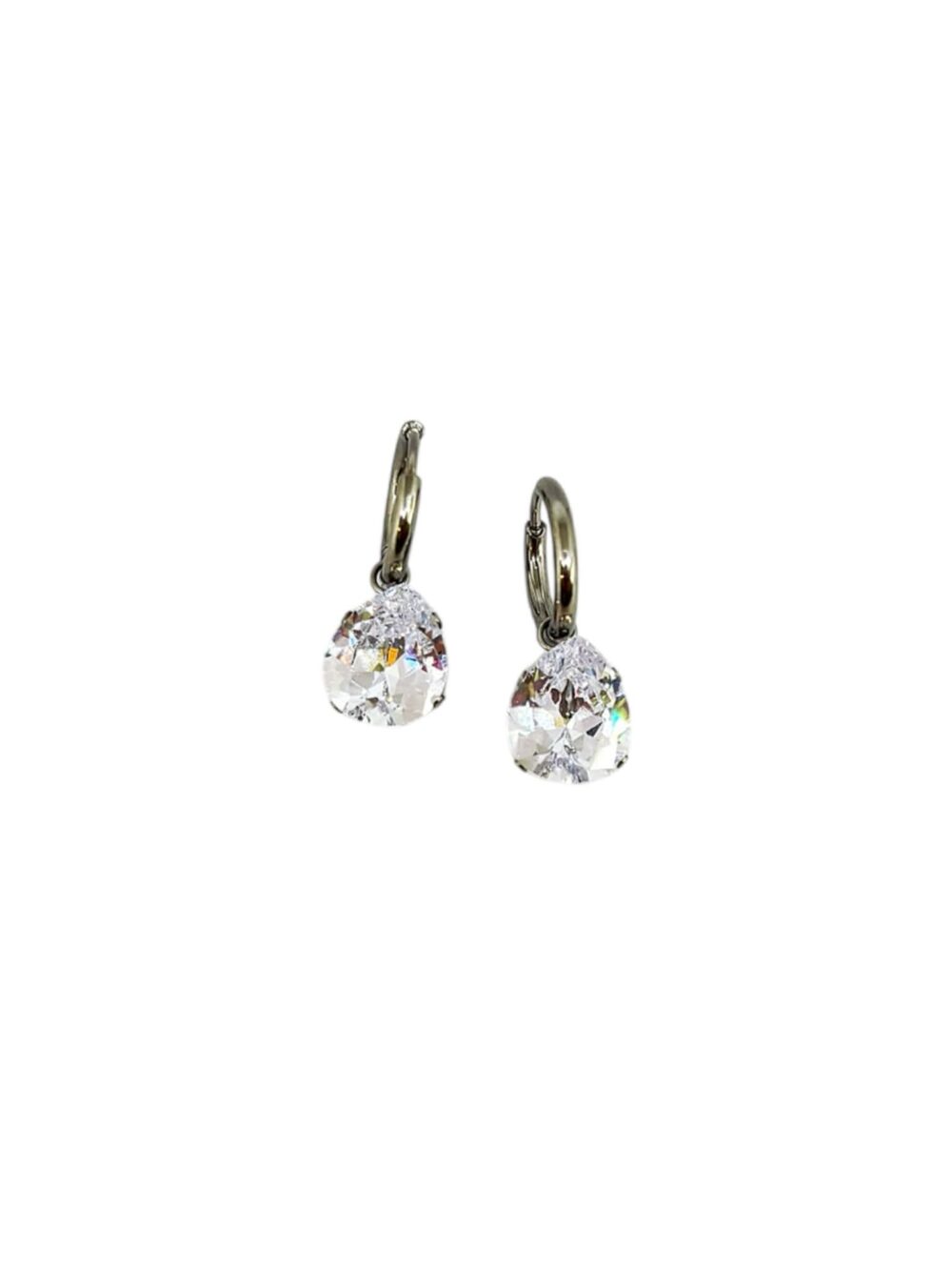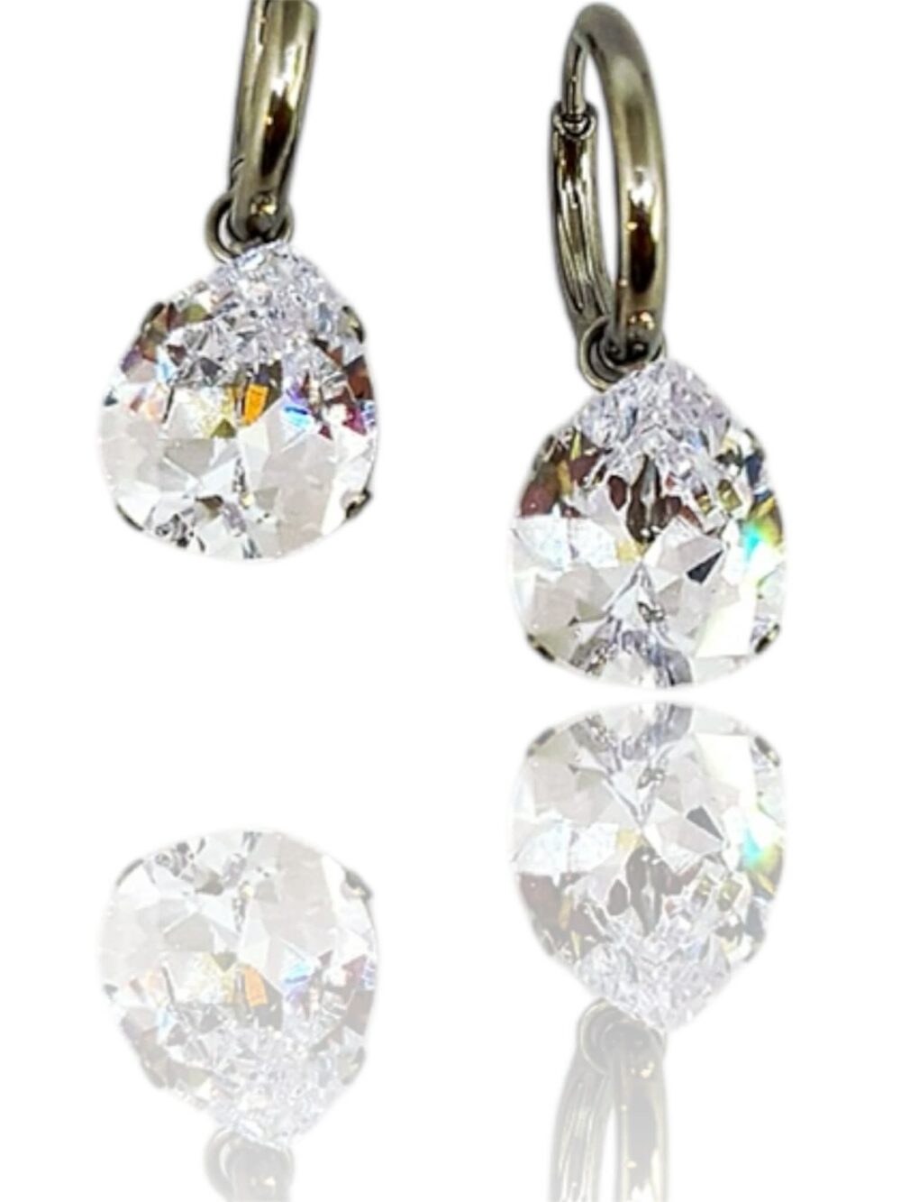Χειροποιήτα σκουλαρίκια απο ανοξείδωτο ατσάλι. Κρικάκια με πεαρσμένο μεγάλο δάκρυ ζιργκόν.
