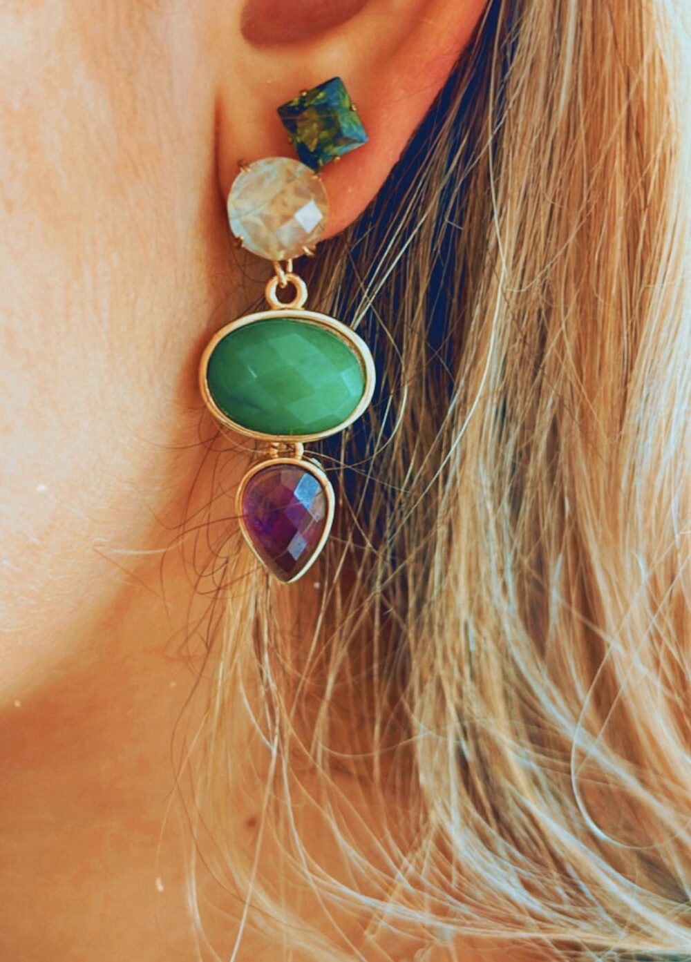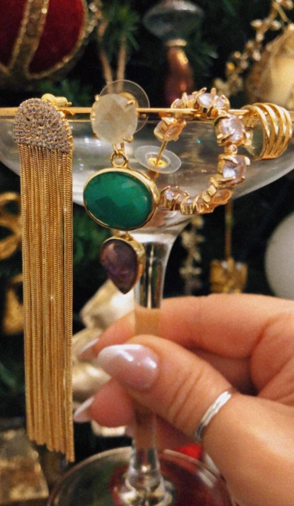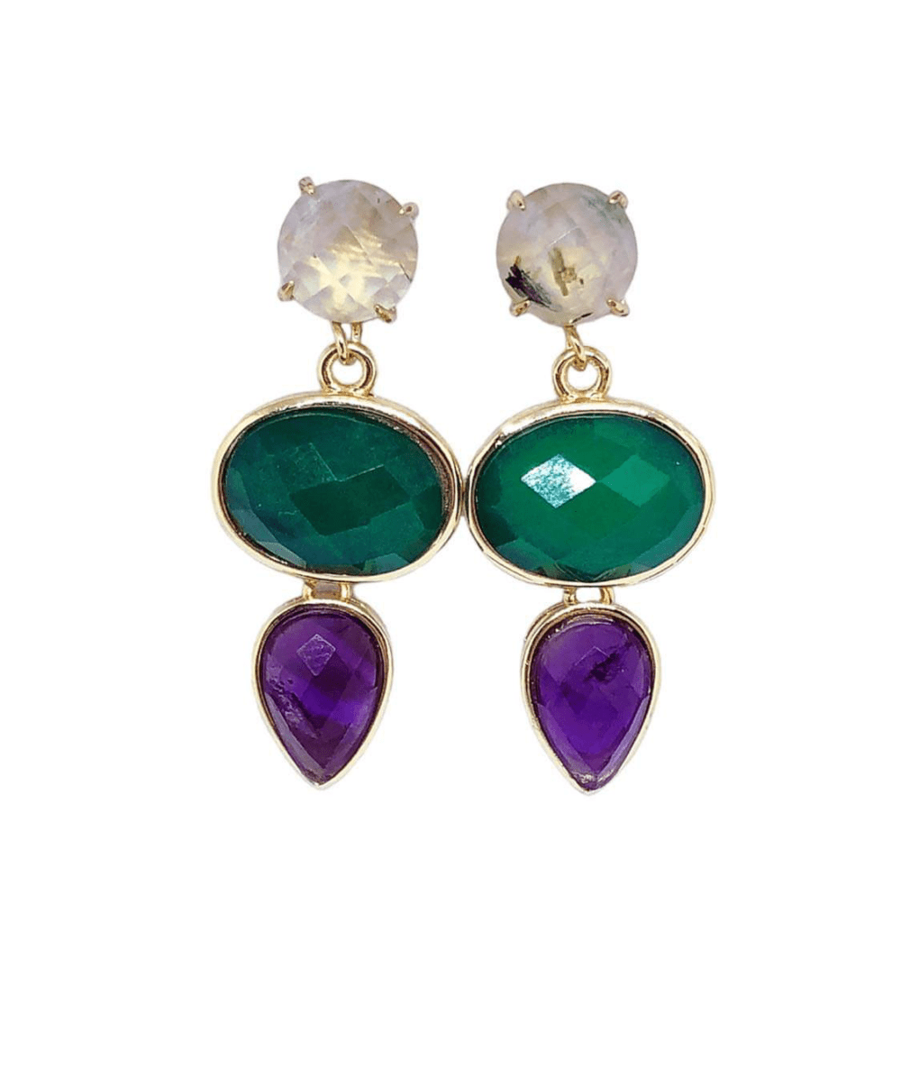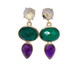 Χειροποιήτα σκουλαρίκια απο οικολογικό ορύχαλκο , επιχρυσωμένο. Δεμένα με ημιπολύτιμες πέτρες.