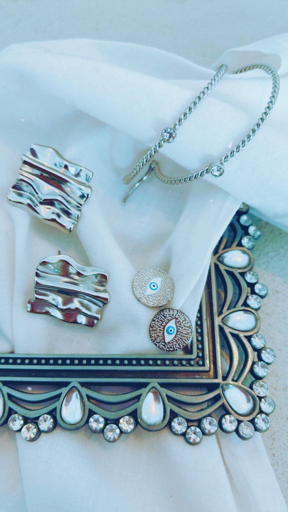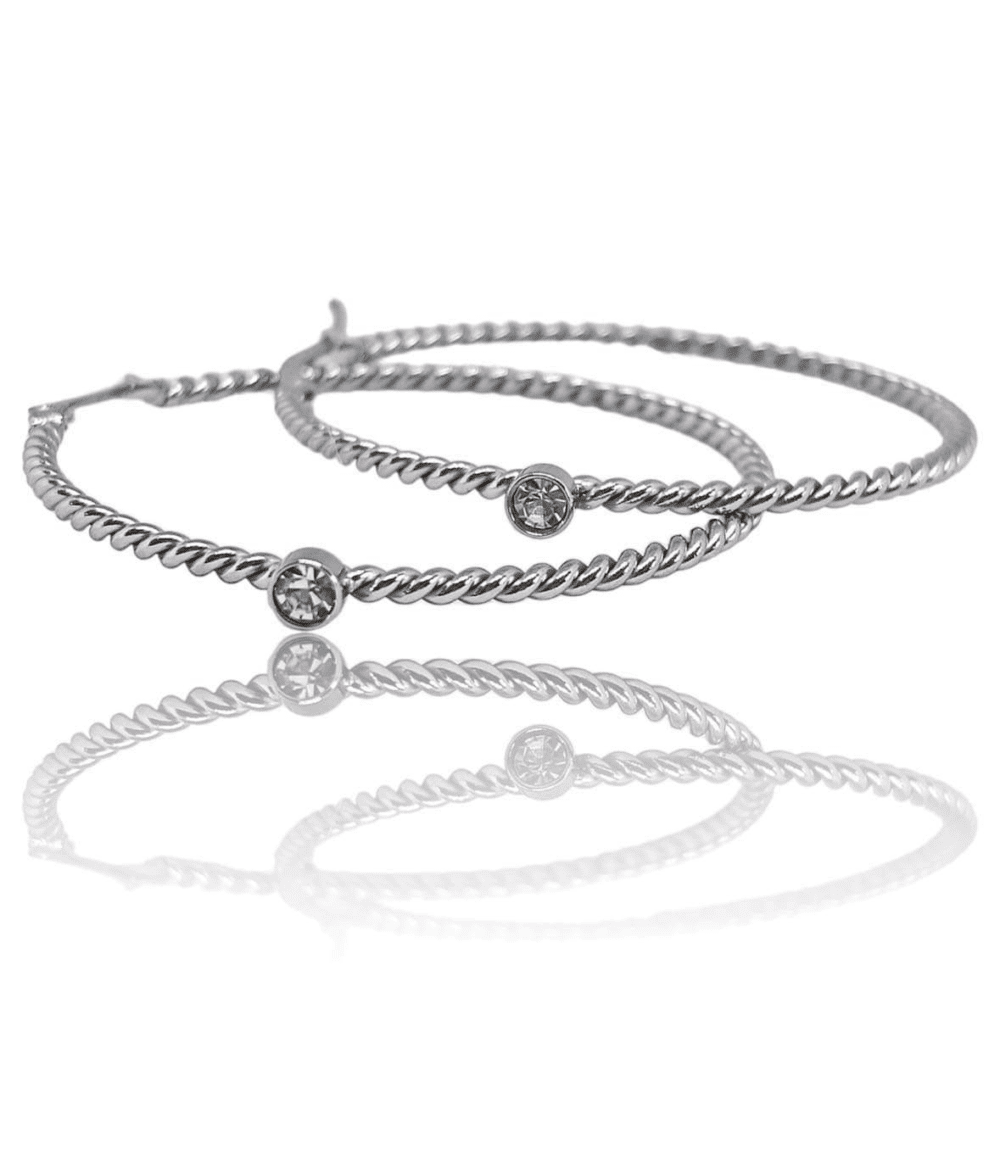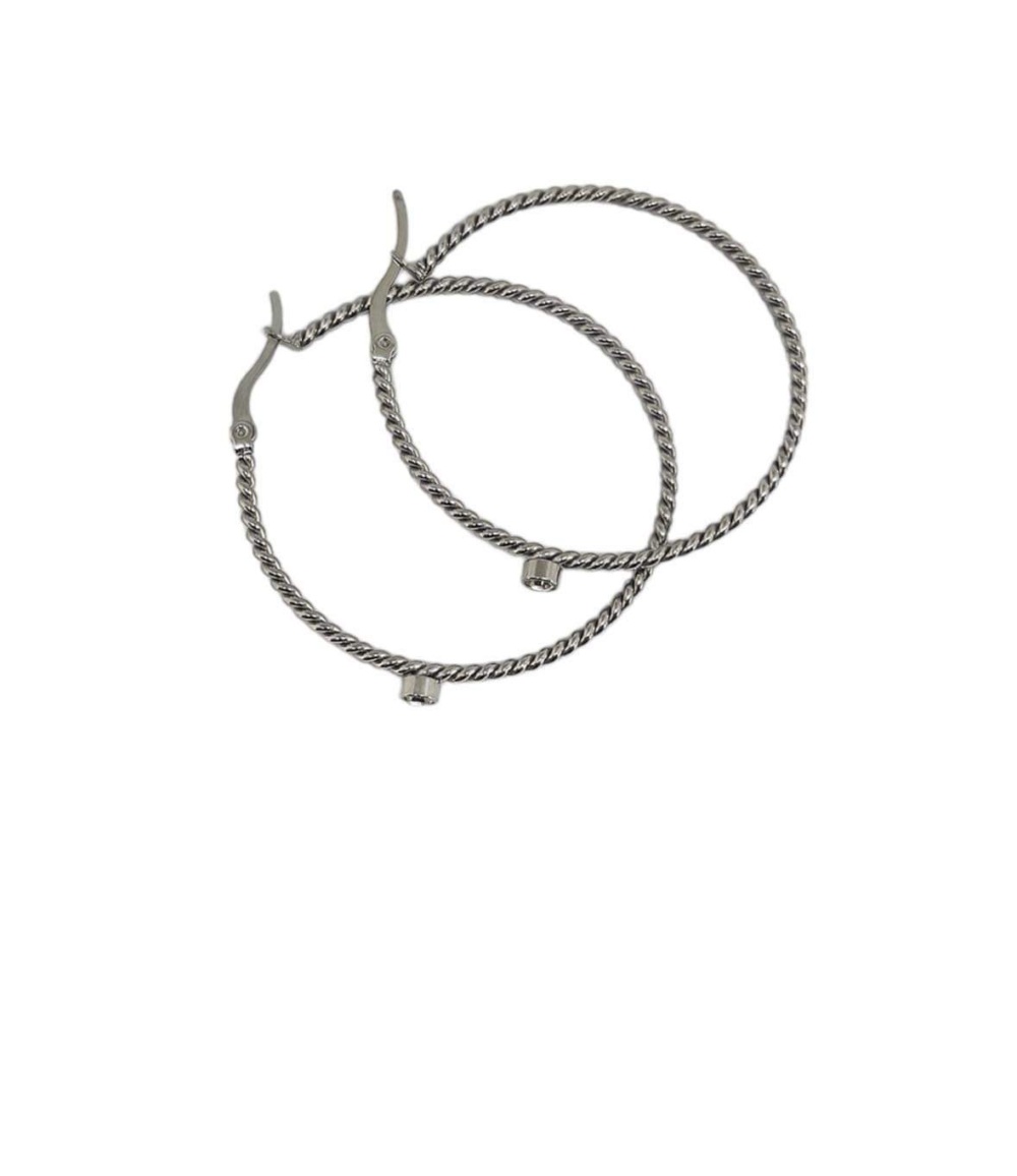 Σκουλαρίκια απο ανοξείδωτο ατσάλι . Στριφτοί κρίκοι με ενα ζιργκόν.