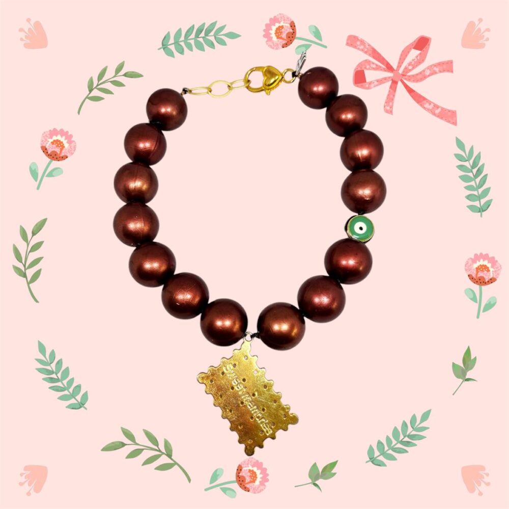 Χειροποιήτο κολιέ για κατοικίδια , με μεγάλες μπρονζέ πέρλες.