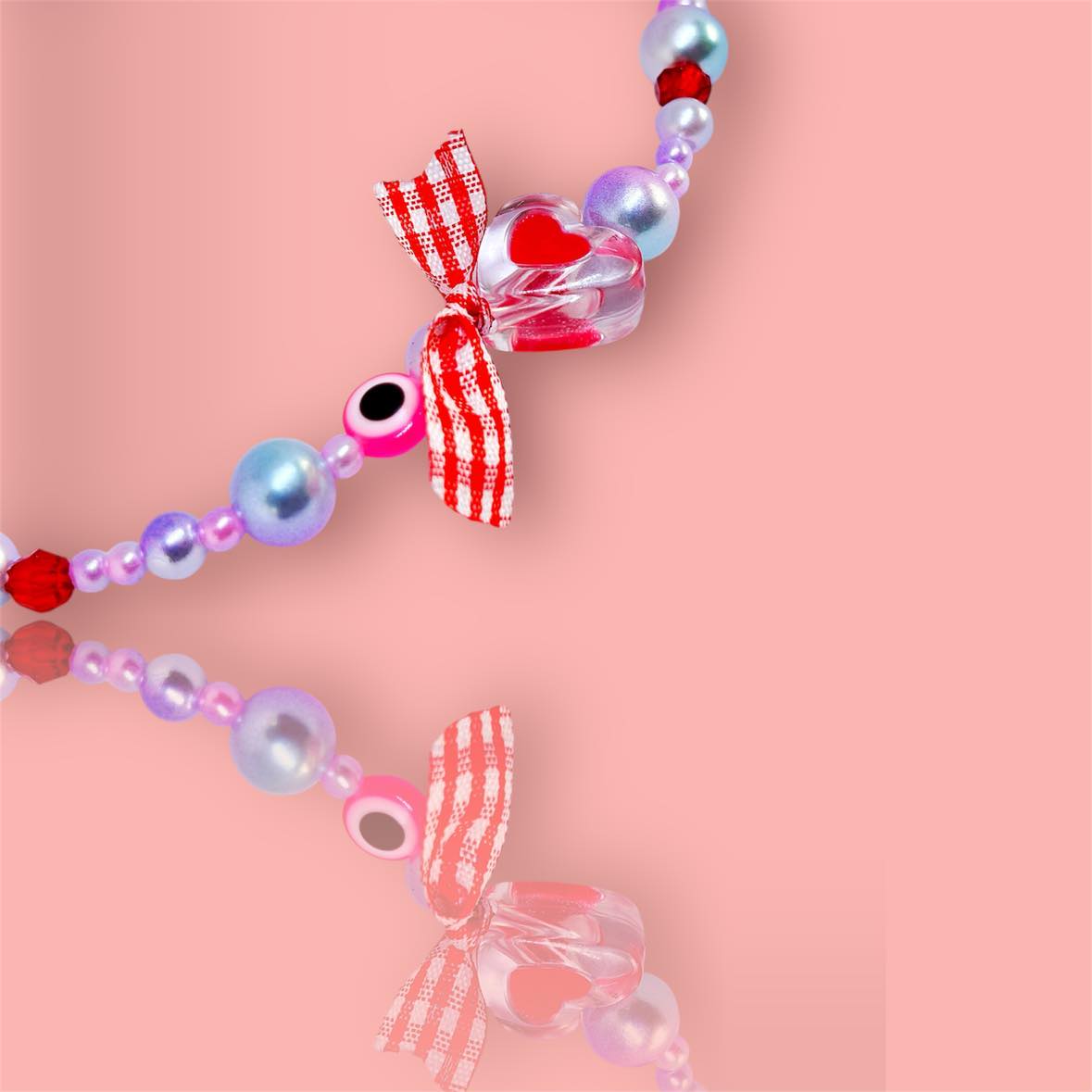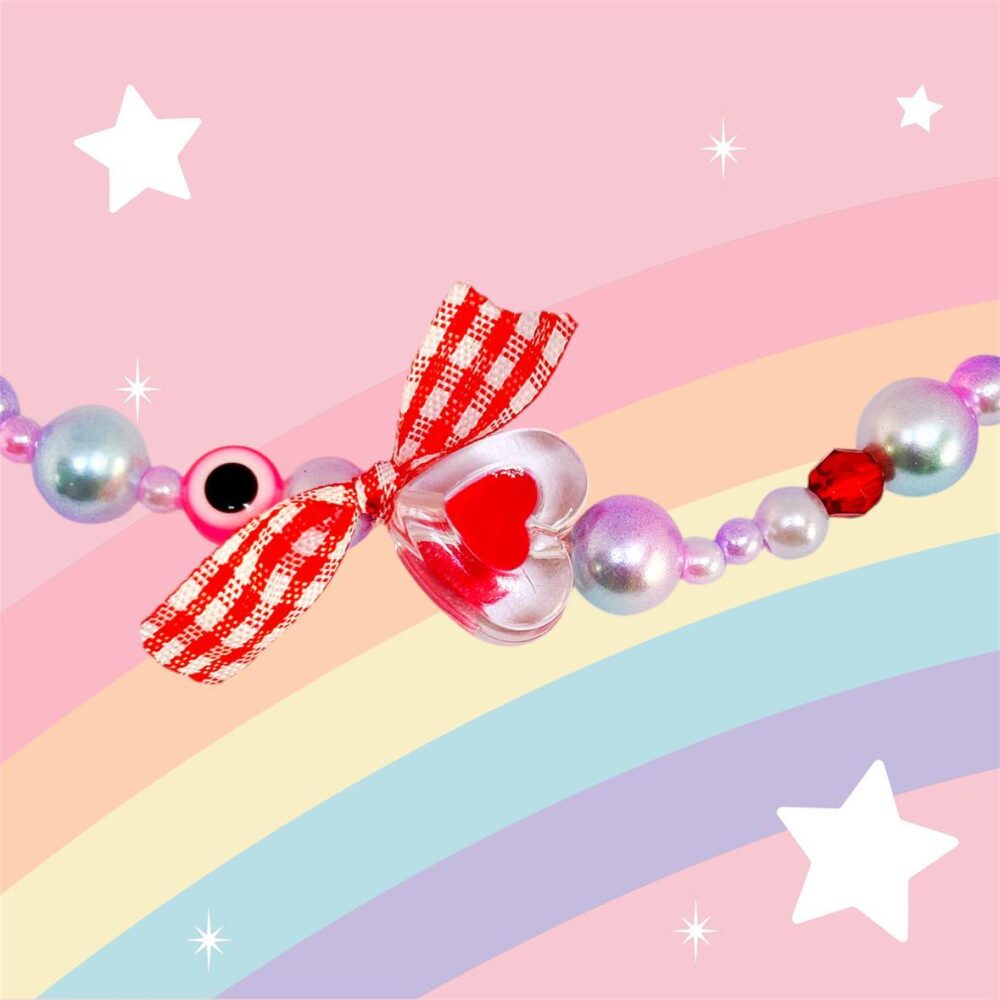 Χειροποιήτο κολιέ με καρδούλα πλέξιγκλας που γράφει μαμά.