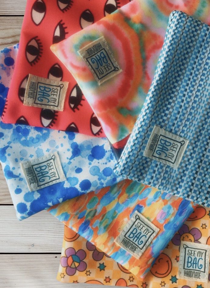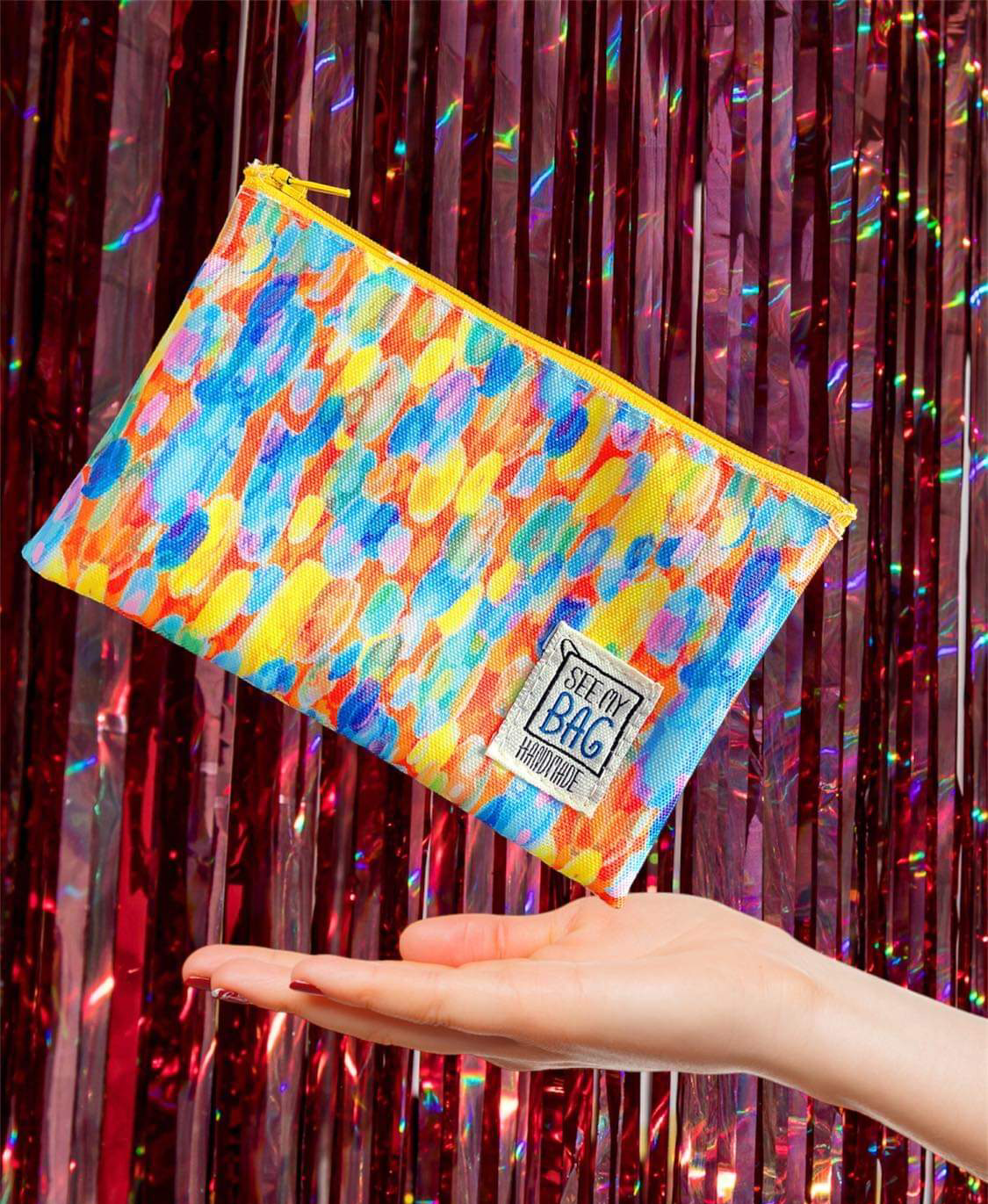 Χειροποιήτο τσαντάκι SEE MY BAG small pochette , wet bag. Αδιάβροχο εσωτερίκο.