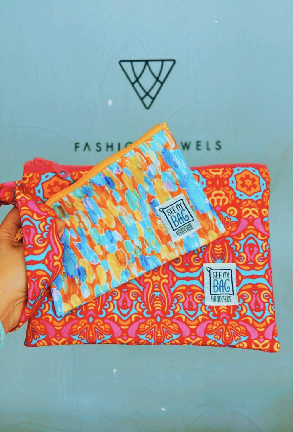 Χειροποιήτο τσαντάκι SEE MY BAG small pochette , wet bag. Αδιάβροχο εσωτερικό.