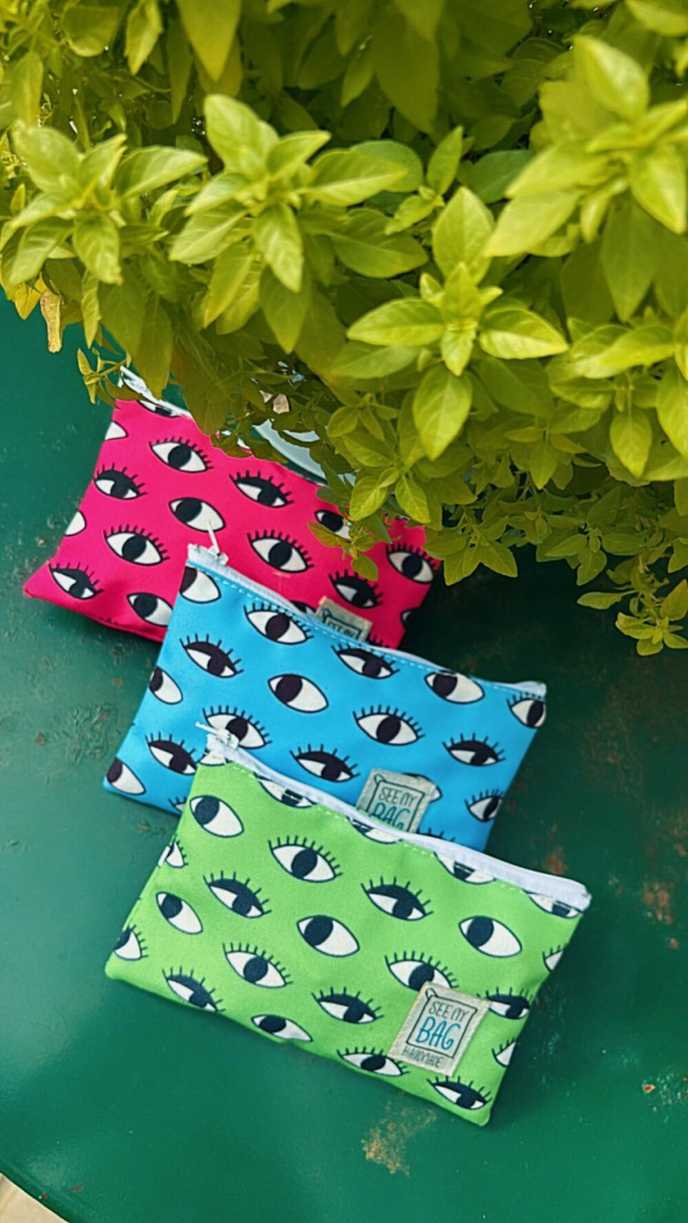 Χειροποιήτο τσαντάκι SEE MY BAG small pochette , wet bag. Αδιάβροχο εσωτερίκο.